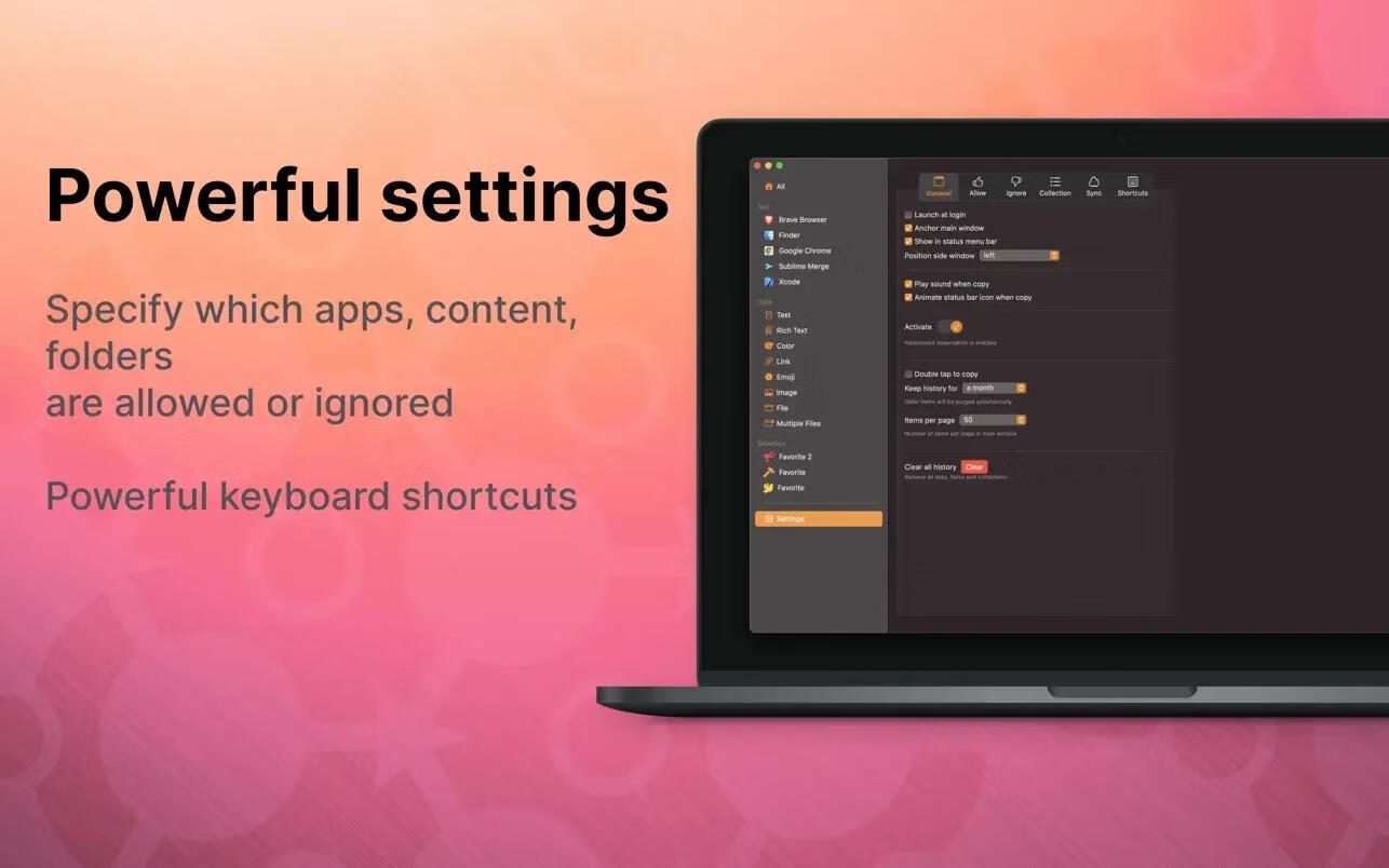 ☁️ 安全 iCloud 同步:手动启用后,剪贴板历史在所有 Apple 设备间加密同步。