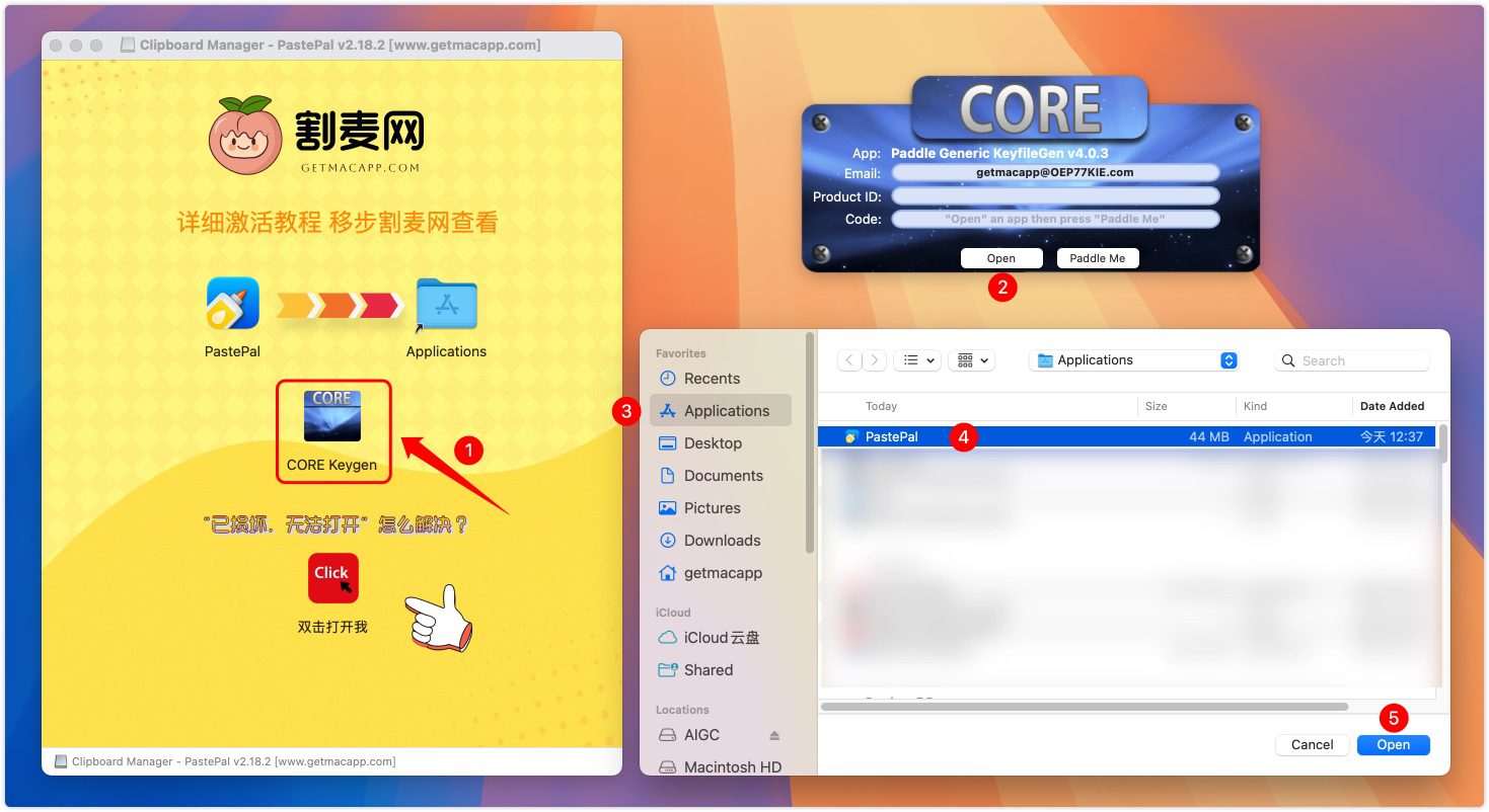 双击打开CORE Keygen,点击Open, 选择PastePal