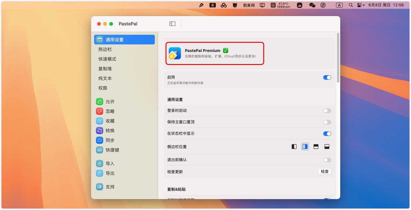 重启pastepal应用 完成激活,提示✅ 就是已经激活!