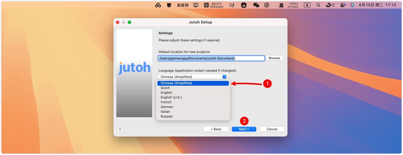 将左侧的Jutoh拖动到右侧的应用程序中,如图