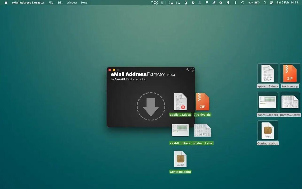 电子邮件地址提取器可以扫描许多常见的文件类型。页面,主题演讲,数字,Microsoft Office,PDF,emlx,SQL数据库-几乎任何包含纯acsii文本的文件都可以扫描。Zip存档可以直接处理-无需在扫描前进行扩展。Mail.app电子邮件帐户也可以从方便的工具面板中轻松扫描。