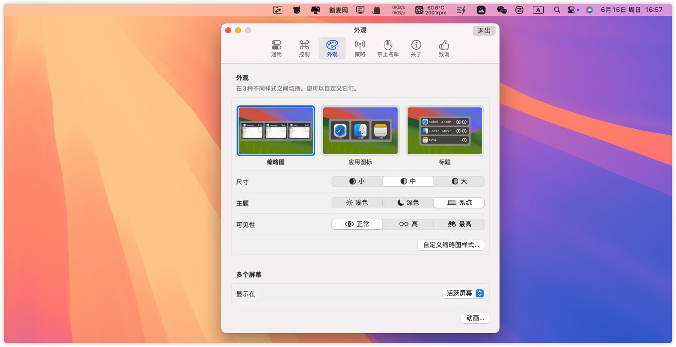 🔹 🖼️ 可视化缩略图墙:实时展示所有窗口缩略图,直观定位目标