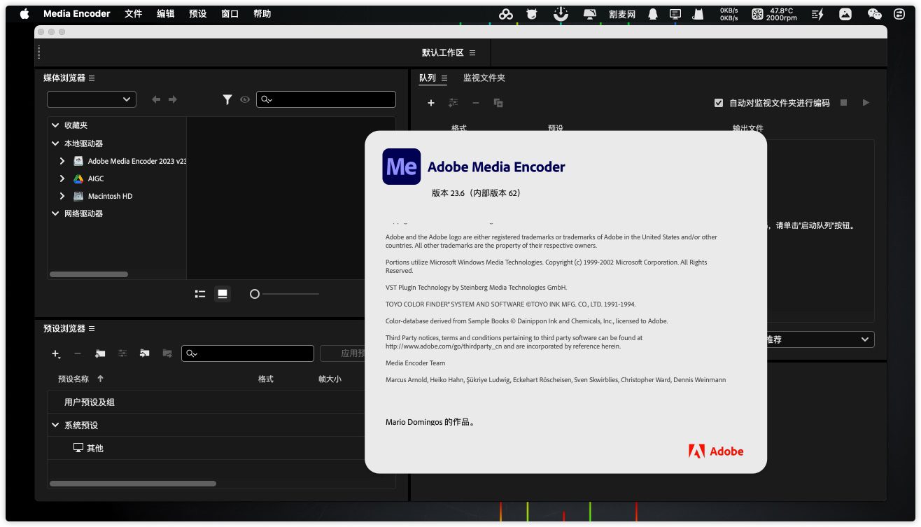 ⏱️ 在视频制作流程的终端环节,Adobe Media Encoder 2023 扮演着 高效视频转码引擎 的核心角色。作为 Creative Cloud 2023 套件的编码中枢,它彻底解决了多格式、多平台输出的复杂性,尤其擅长处理 4K/8K 超清素材的批量转码与压缩。其革命性的 硬件加速编码技术(支持 Apple M 系列芯片原生优化),可将 H.265 输出速度提升 300%,同时无缝桥接 Premiere Pro 与 After Effects 的渲染队列,让专业影视工作流实现“编辑-特效-输出”闭环。