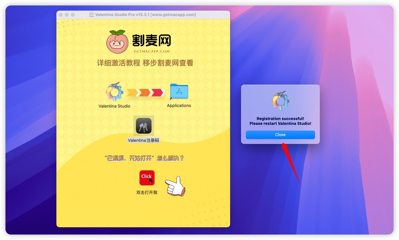Valentina Studio pro下载完成后打开,拖动左侧的软件到右侧Applications应用程序中