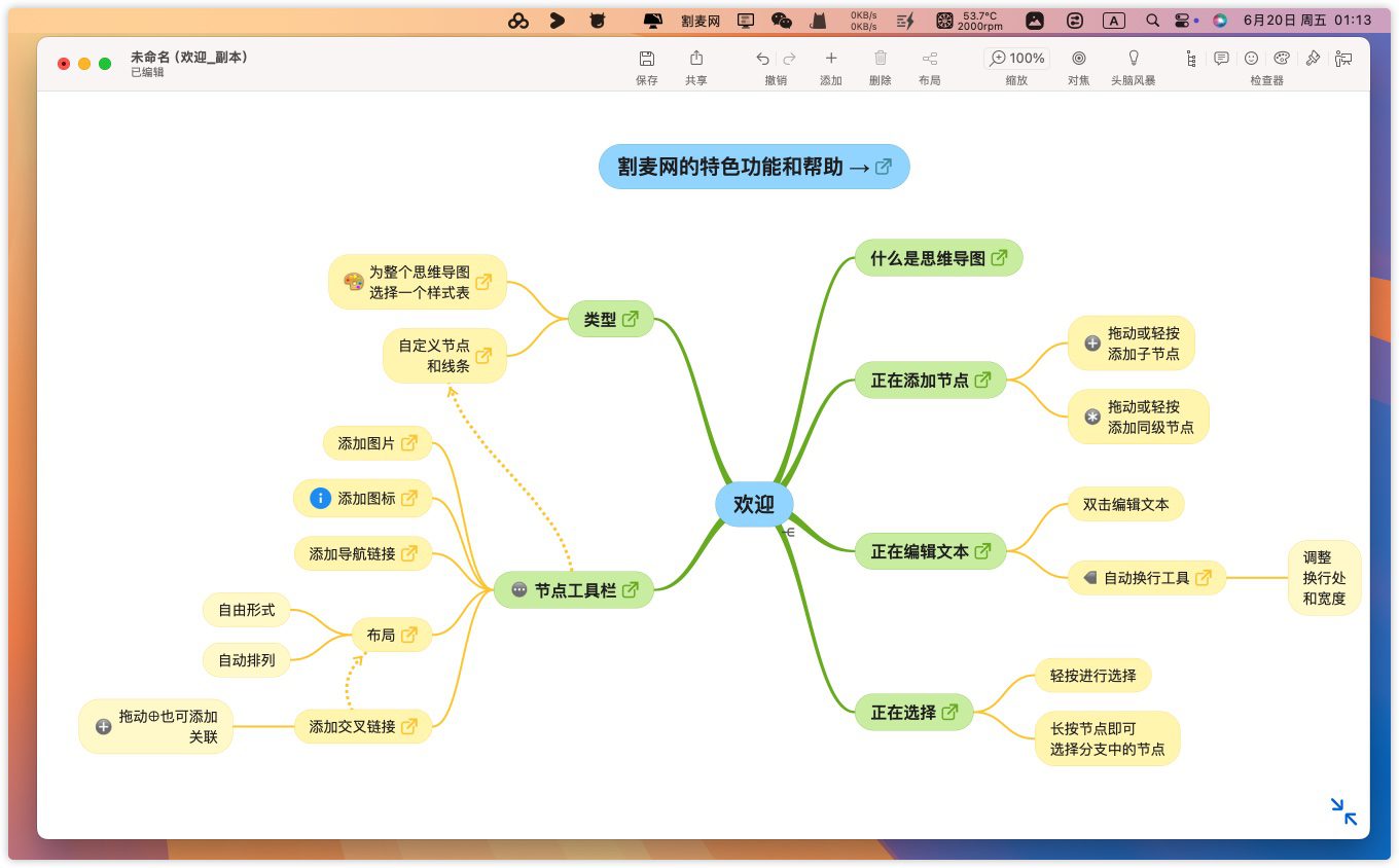 焦点模式:⌘+点击节点隐去其他分支,专注当前思路