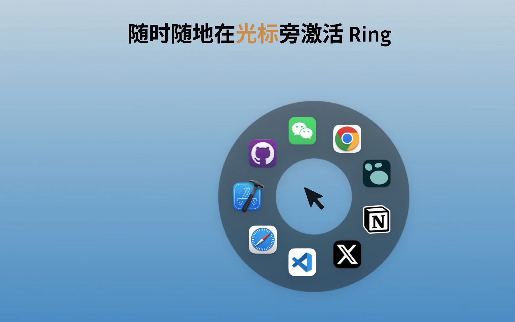 Ring 是专为 macOS 设计的革命性 Dock 替代工具 ✨,彻底解决传统程序坞占据屏幕空间、操作效率低下的痛点。通过独特的圆环交互设计,它让应用切换从「鼠标长距离移动」升级为「指尖瞬时点击」🎯。隐藏系统 Dock 后,用户既能获得纯净的沉浸式工作环境,又能通过 ⌥+C 或长按鼠标 0.8 秒快速唤醒环形菜单,实现 零干扰高效工作流 ,堪称追求极简与速度的 Mac 效率神器 💻!