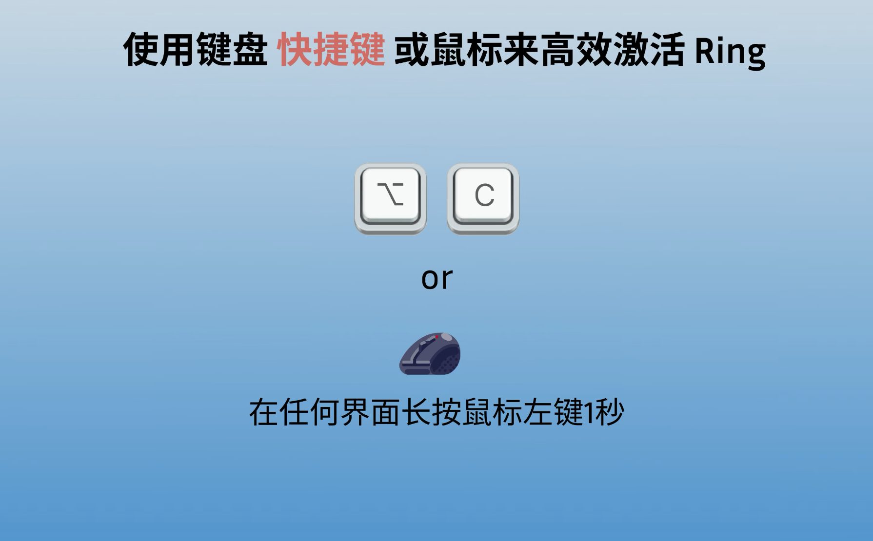 ⚡️ 瞬时唤醒术: 支持 ⌥+C 快捷键/长按左键 0.8 秒双触发模式,手指无需离开工作区 -
