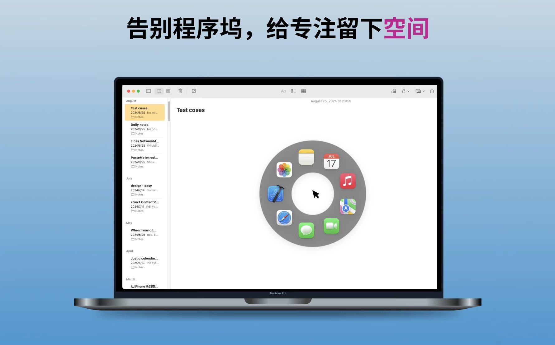 👨💻 多任务处理者:编程+文档+沟通软件环形排布,⌥+C 一键直达目标应用 -