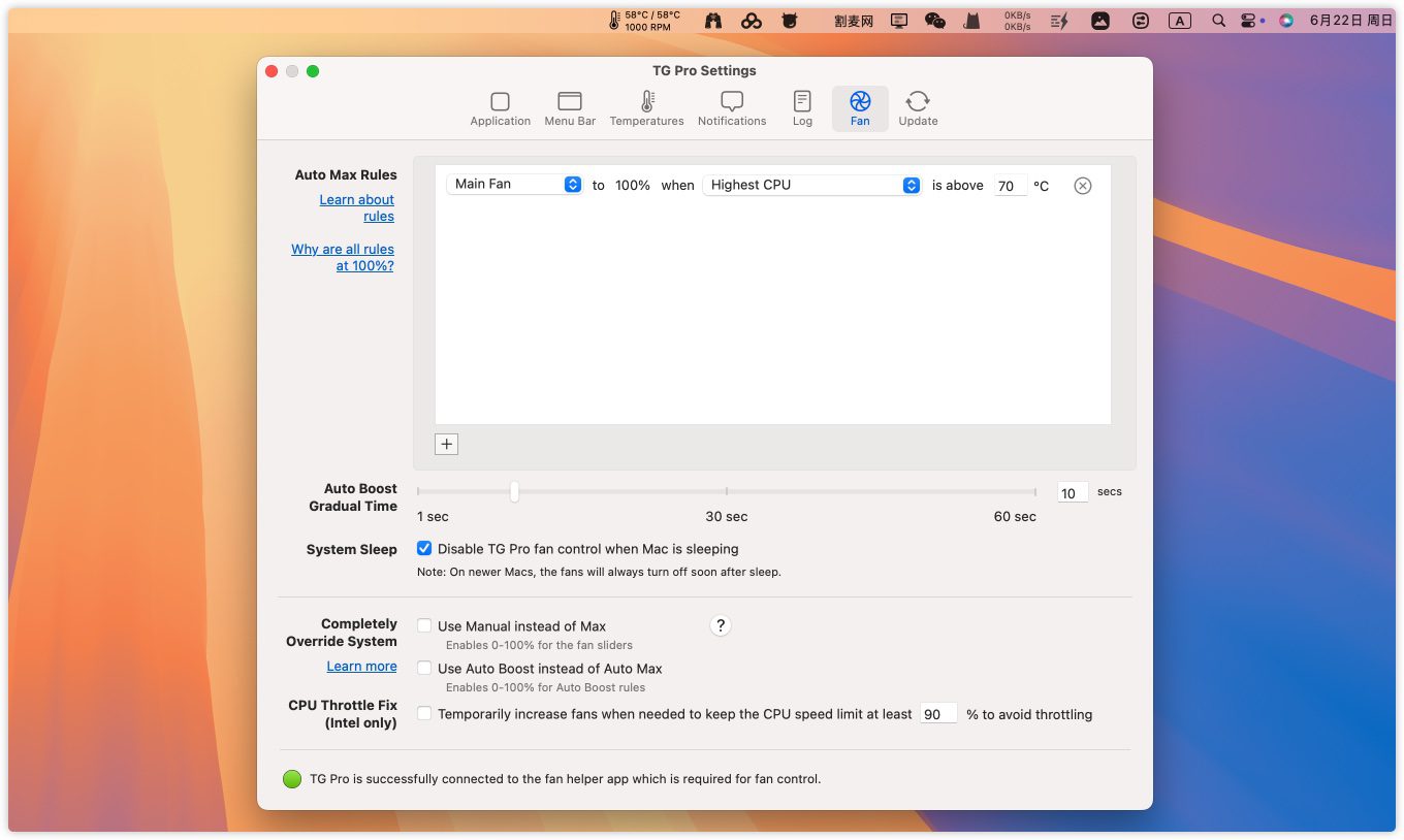 TG Pro 是 macOS硬件健康监护专家 🌡️,以毫米级精度实时监控CPU/GPU/SSD等核心元件温度与风扇转速⚙️。这款 专业级温控神器 彻底解决MacBook降频卡顿、风扇狂转、硬件过热老化的痛点,通过菜单栏可视化仪表盘+智能风扇策略,让设备始终运行在 安全性能甜区 ——M系列芯片用户从此告别「烫手山芋」困扰,延长设备寿命高达30%✨!