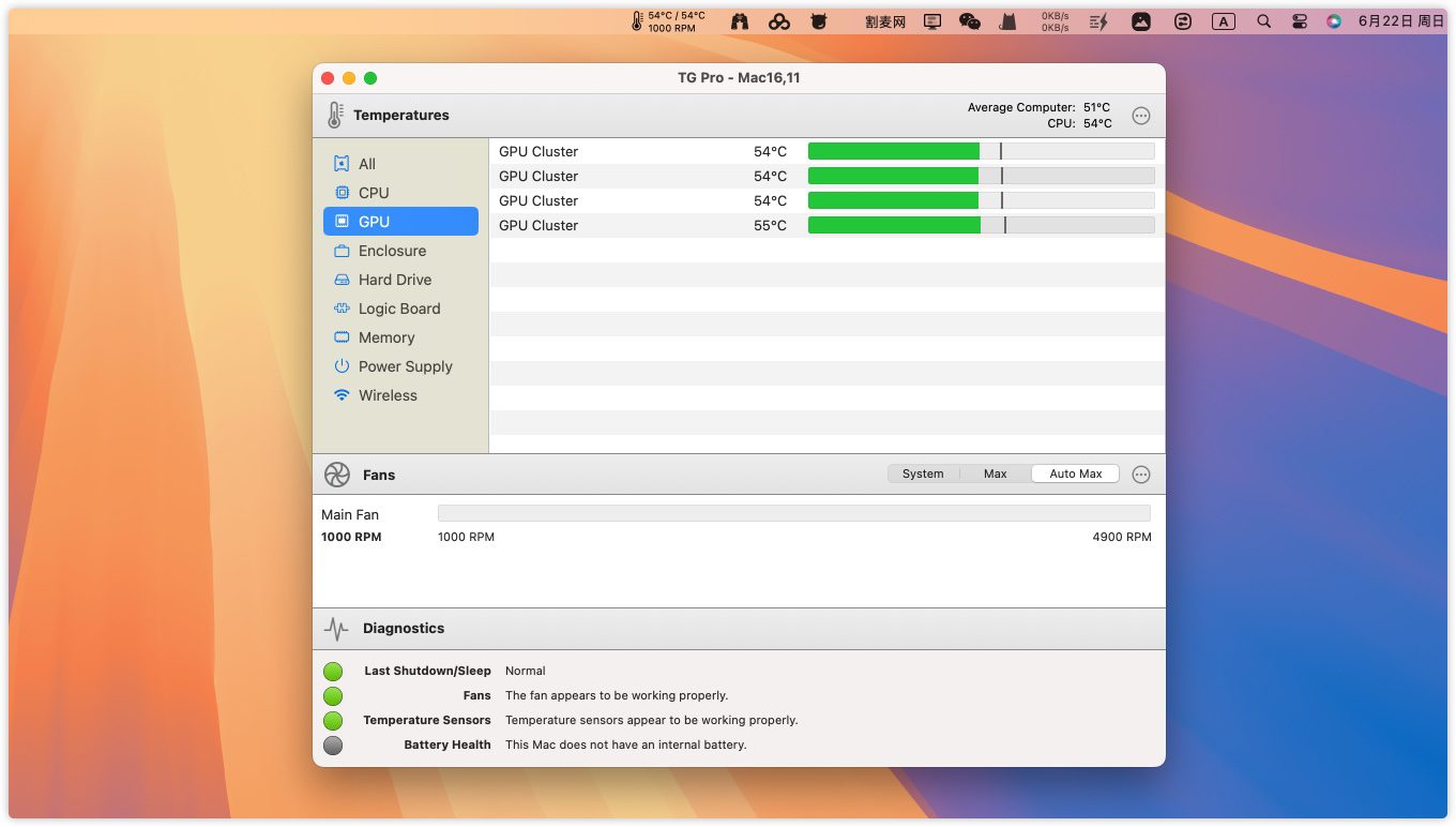 💡冷知识: M1芯片的CPU与GPU共享散热模组——GPU满载时CPU温度可能比传感器显示值高8℃! TG Pro通过算法校正实现真实温度映射 🔬