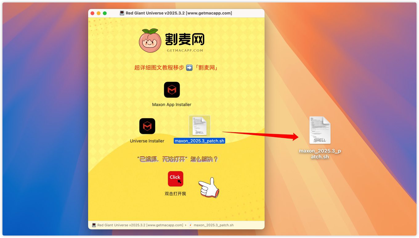 安装完成后把maxon_2025.3_patch.sh拖到桌面