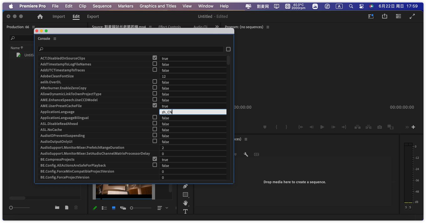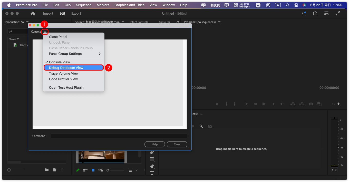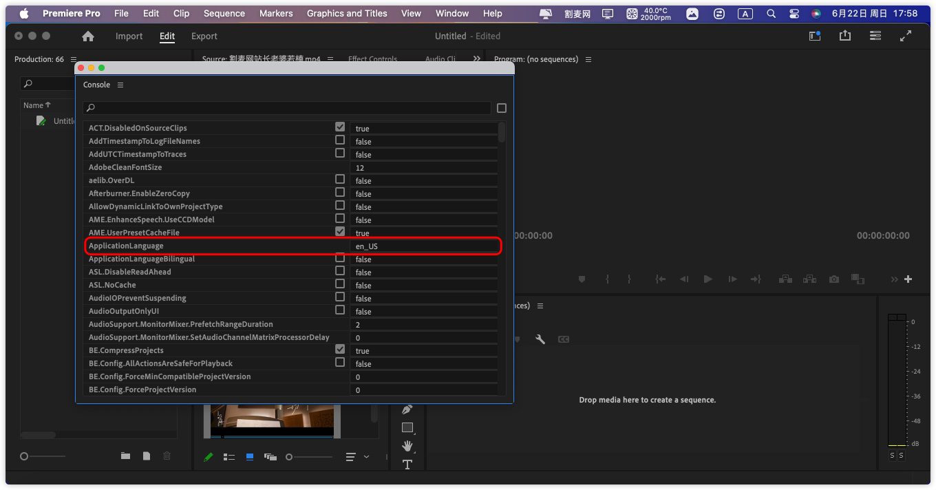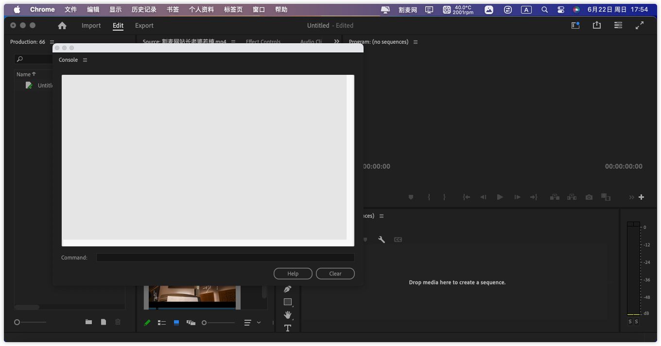 1.进入pr后,随便新建一个合成,然后快捷键按command+F12(或fn+command+F12)快捷键 打开Premiere控制台界面;