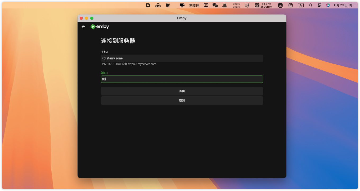 2.输入收藏的主机服务器地址,点击连接 (需要自备媒体库服务器地址,测试账号来自淘宝)