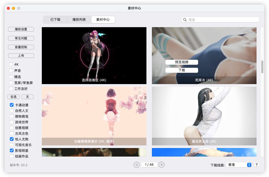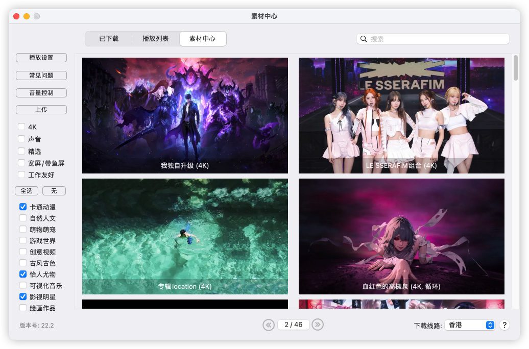 内置2000+分类视频资源,涵盖自然风光、动漫游戏、创意艺术等10+主题,每天更新素材库,4K画质带来沉浸式体验。用户还能一键导入个人视频,连旅行vlog都能变成专属壁纸。 -