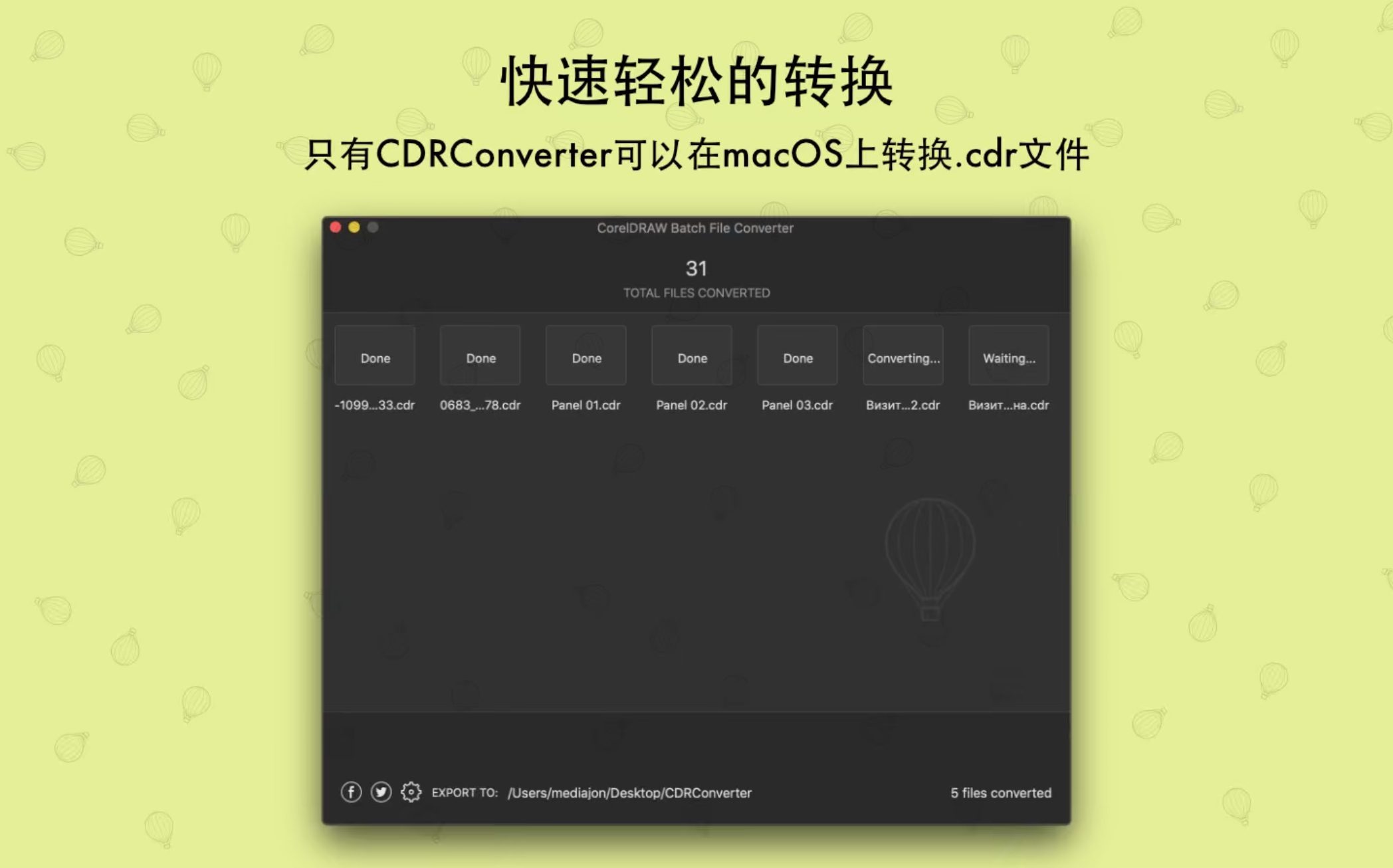 🖌️ 在Mac上处理CorelDRAW文件却未安装昂贵软件?CDRConverter 正是您的高效救星!这款专业矢量转换工具,能将CDR文件无损转换为可编辑PDF/SVG格式,完美保留原始矢量特性。独创的批量转换引擎支持拖放操作,无需CorelDraw或Adobe套件,3秒完成单个或上百文件处理,让印刷厂、设计师的跨格式协作效率提升300%!