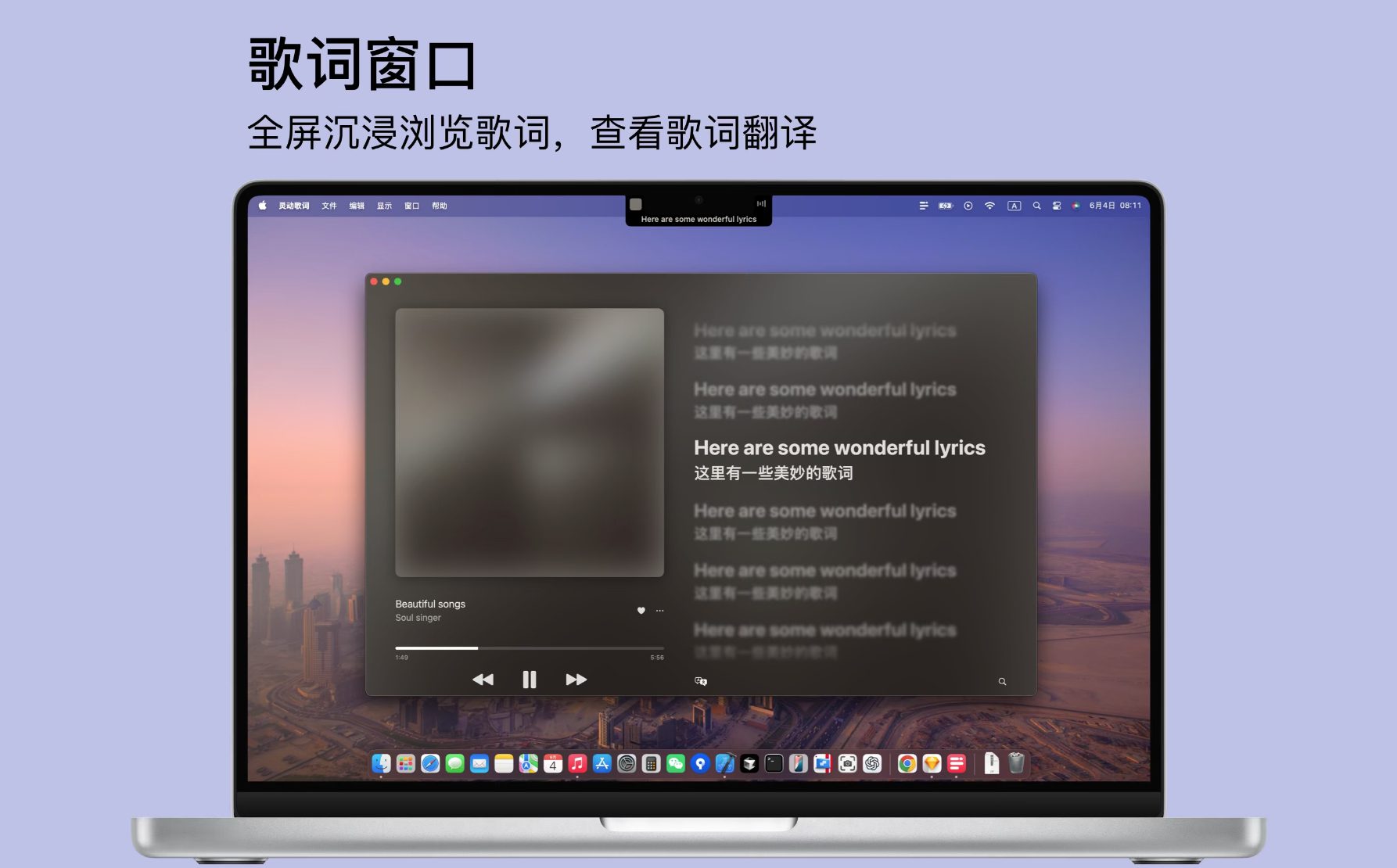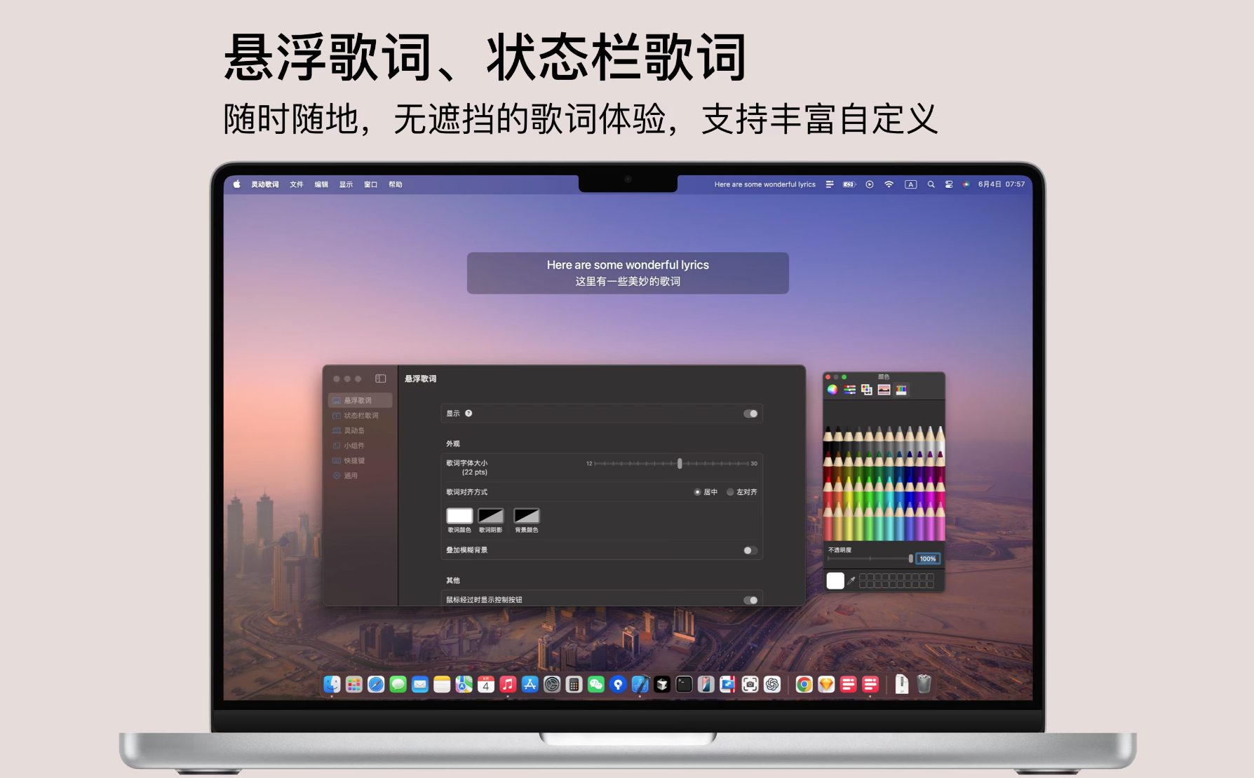 Dynamic Lyrics 是Mac平台的悬浮歌词神器💫,能在桌面任意位置实时显示Apple Music/Spotify/Vox的歌词与翻译。突破传统播放器限制,它通过悬浮窗、状态栏、小组件和独创的Mac灵动岛歌词功能实现跨应用歌词同步,配合多语言翻译与环境识歌技术,让用户无需切屏即可沉浸式享受音乐🎧。