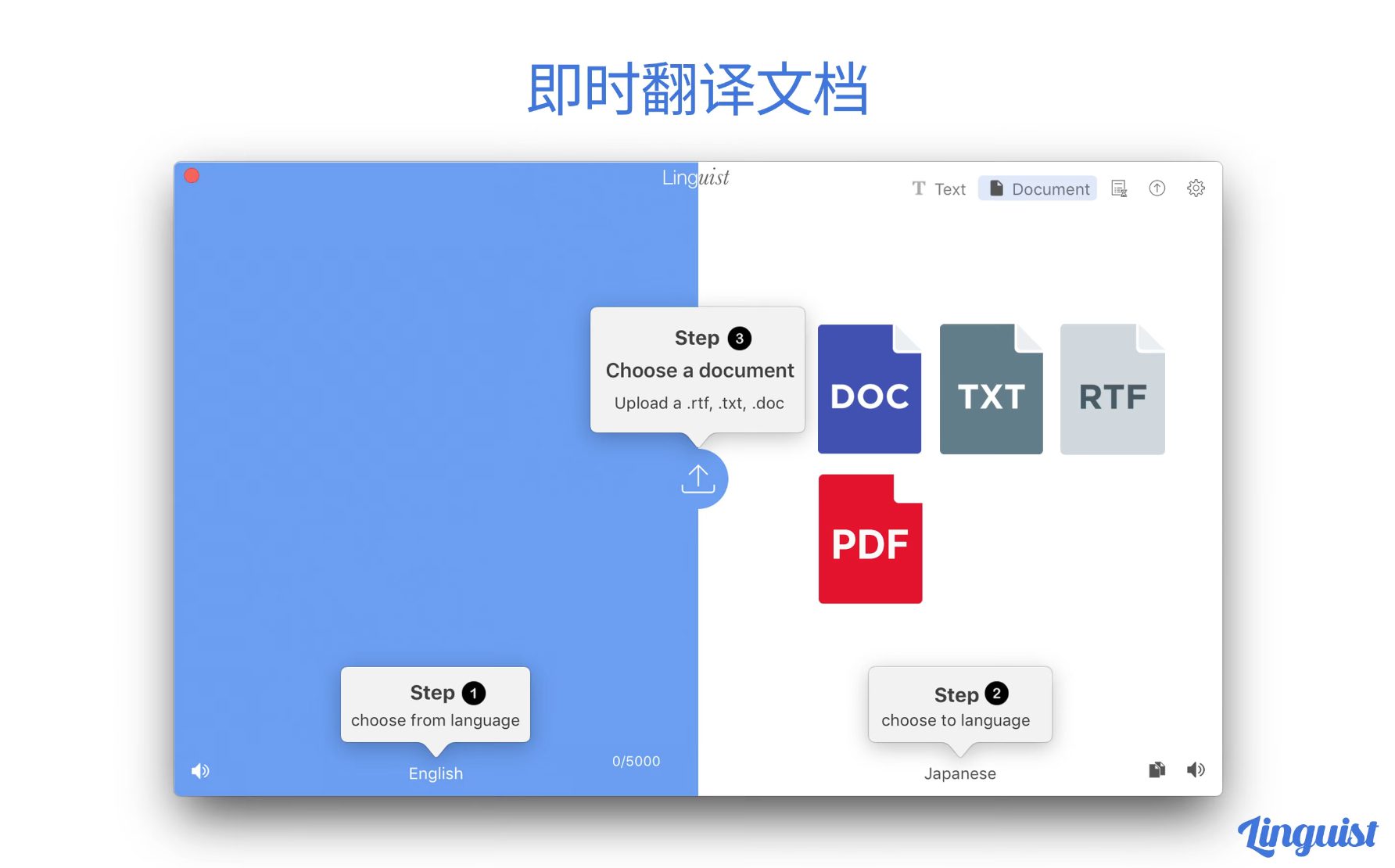 📂 多格式文档解析:独家支持 PDF/DOC/TXT/RTF 文件翻译,保留原始排版格式,技术手册、合同等专业文档一键转译。 -