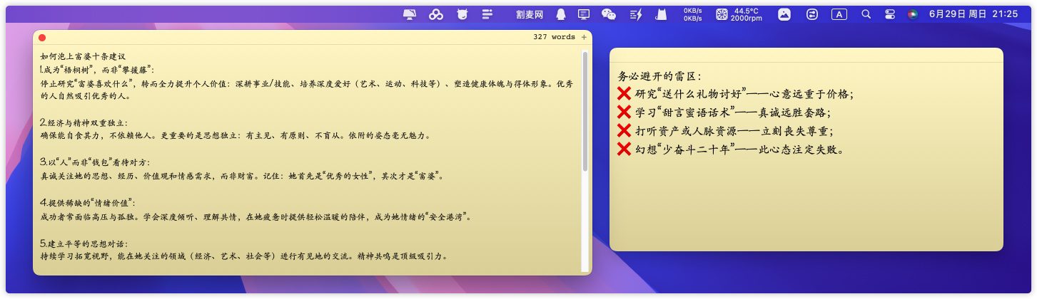 Sticky 是一款桌面级悬浮便利贴工具,彻底打破传统笔记软件的应用窗口限制。📌 凭借 像素级定位自由、跨屏提醒联动 和 军事级数据加密 三大核心优势,让数字便签真正融入工作流。🖥️ 无论是记录转瞬即逝的灵感、管理多线程任务,还是构建结构化知识库,它都能通过零层交互的桌面嵌入体验,实现 零中断工作流记录,重新定义 Mac桌面效率工具 的标杆!🚀
