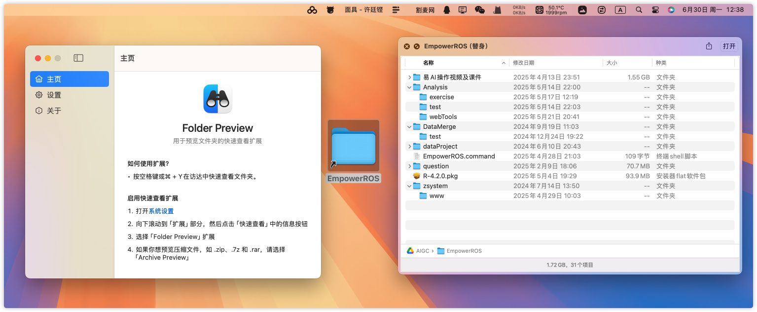 Folder Preview 是 macOS 的革命性Finder增强工具,将空格键的「快速查看」功能进化至文件夹层级!🚀 通过 深度目录透视 + 多级结构可视化 技术,无需反复点开子文件夹即可一览嵌套文件全貌。🖥️ 支持 自定义显示逻辑(隐藏文件/扩展名/图标尺寸),比系统原生预览效率提升300%,彻底终结「套娃式点击」—— 文件检索工程师 和 素材整理师 的终极生产力武器!