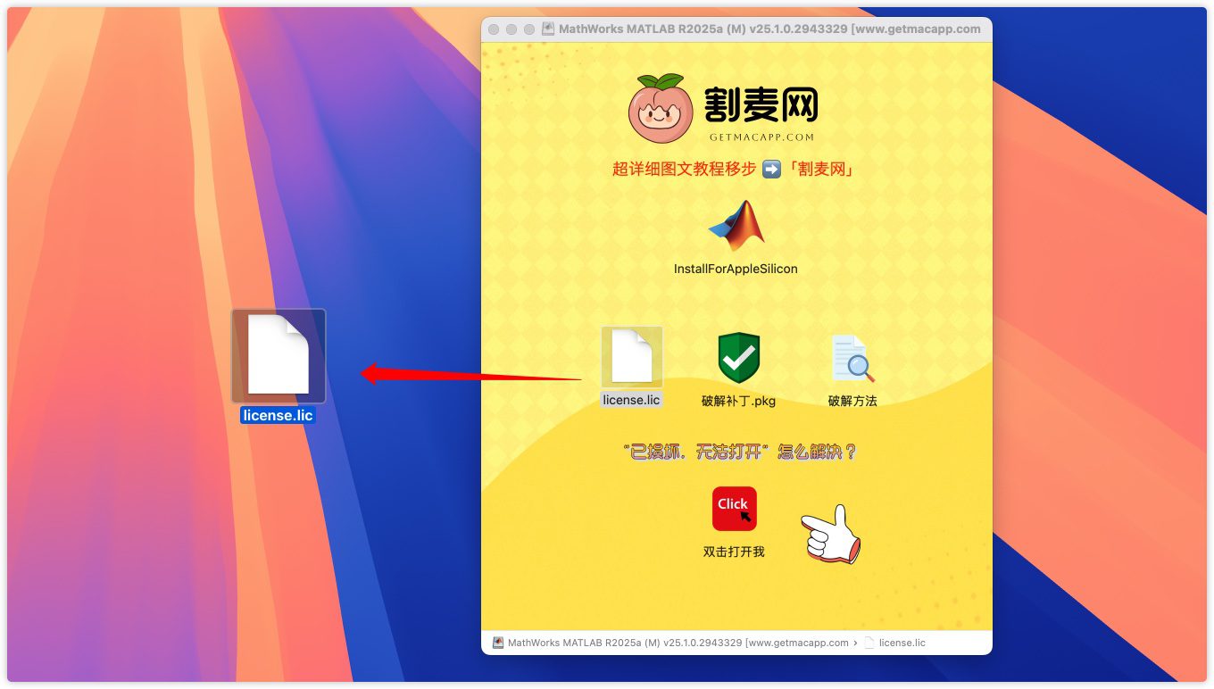 13.返回matlab mac破解版镜像包找到MATLAB破解补丁,双击安装即可。