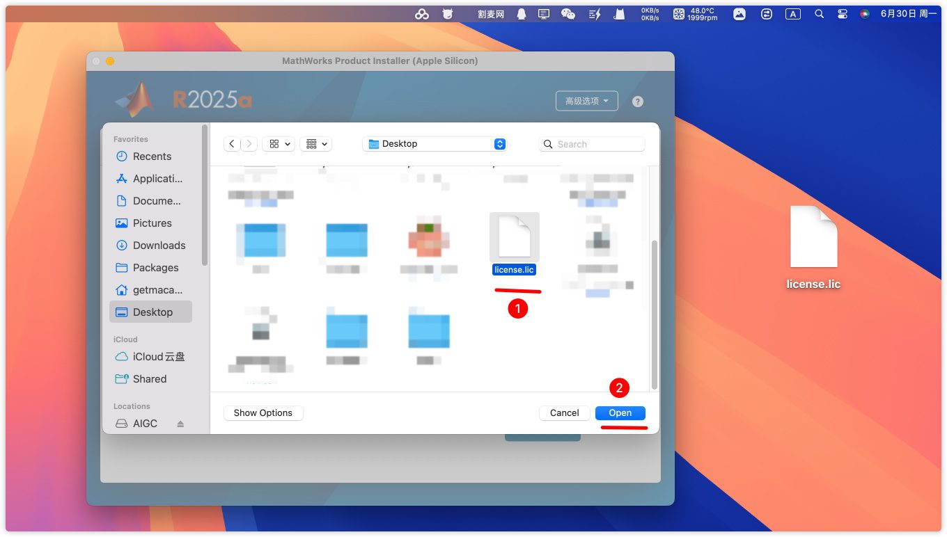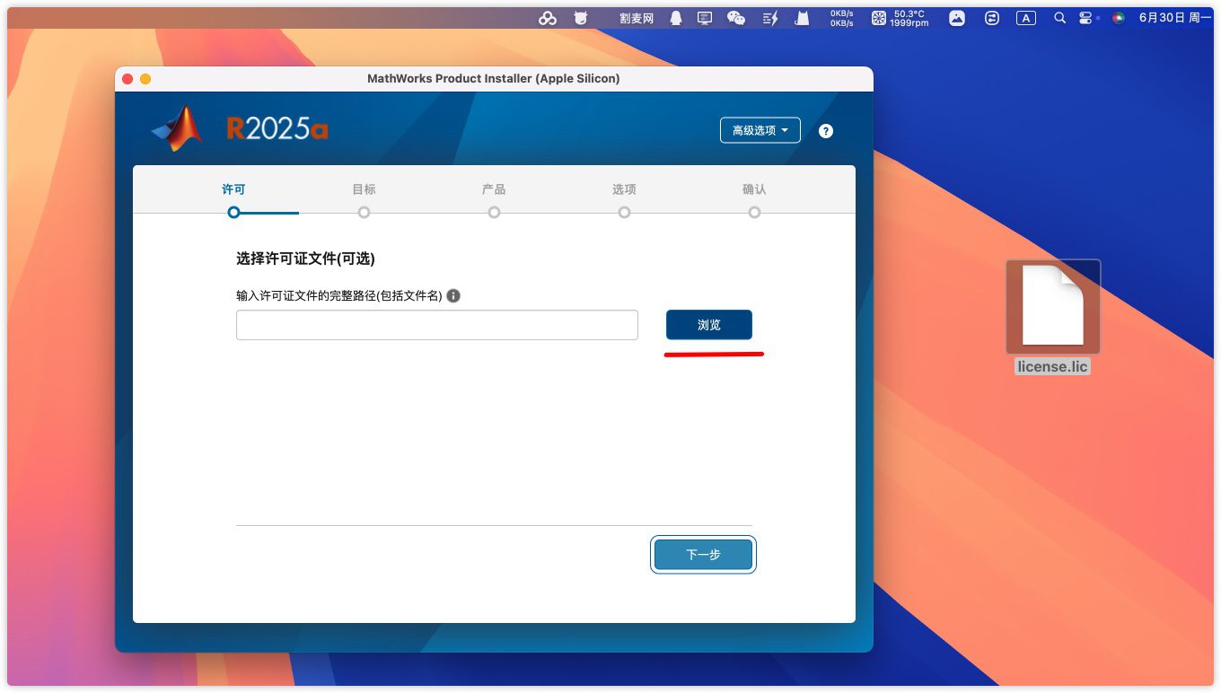 6.点击浏览,选择刚才拖到桌面的桌面的license,点击open