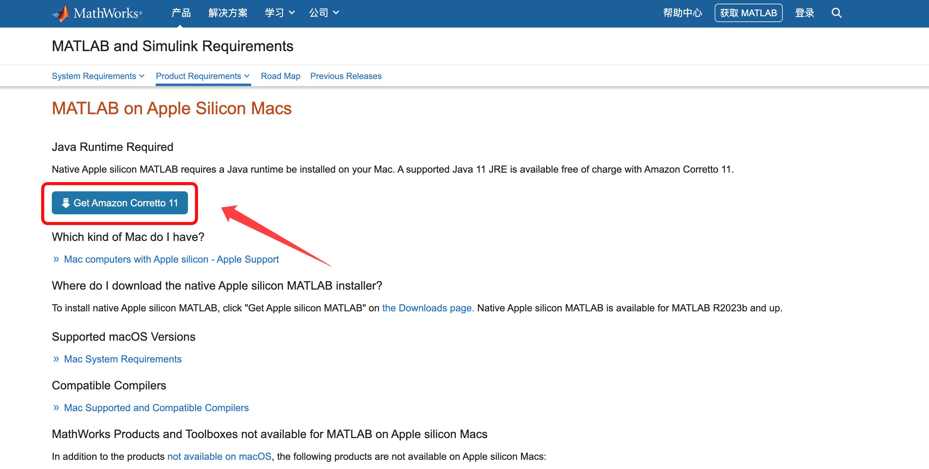 官网:https://ww2.mathworks.cn/support/requirements/apple-silicon.html?s_tid=pi_pp_ac_R2025a