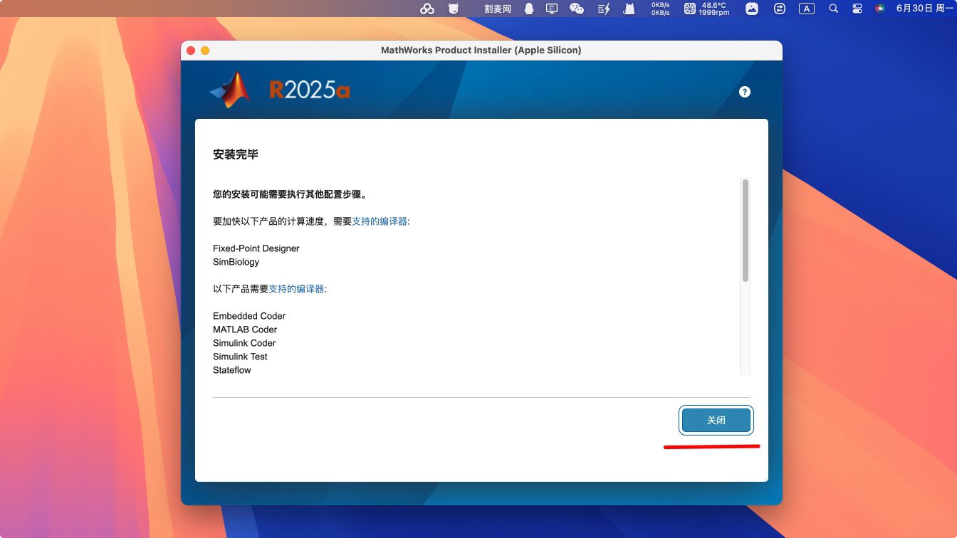 12.matlab 2025破解版安装完成,点击关闭