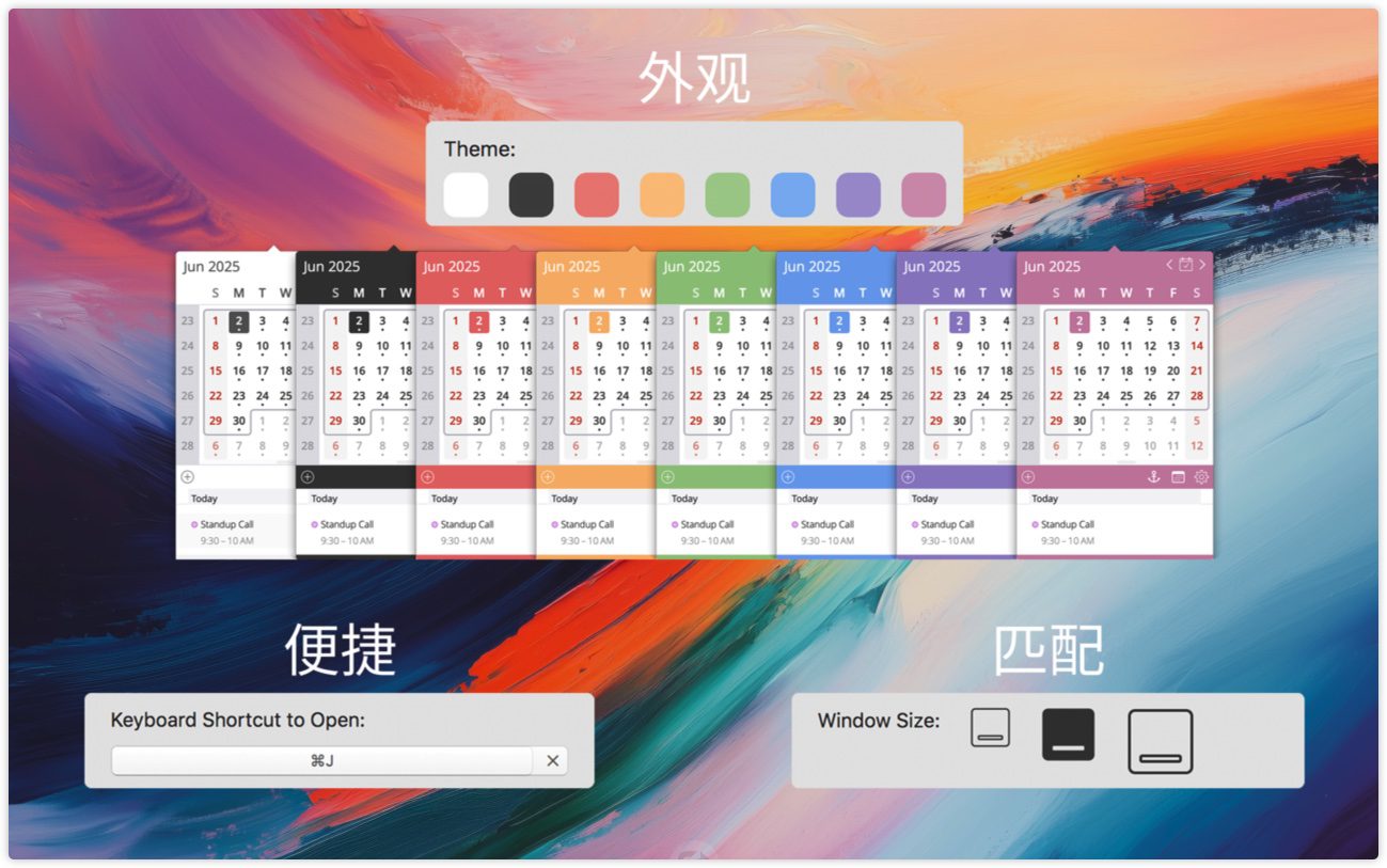 深度自定义体系:主题色/周起始日/事件图标库自由配置