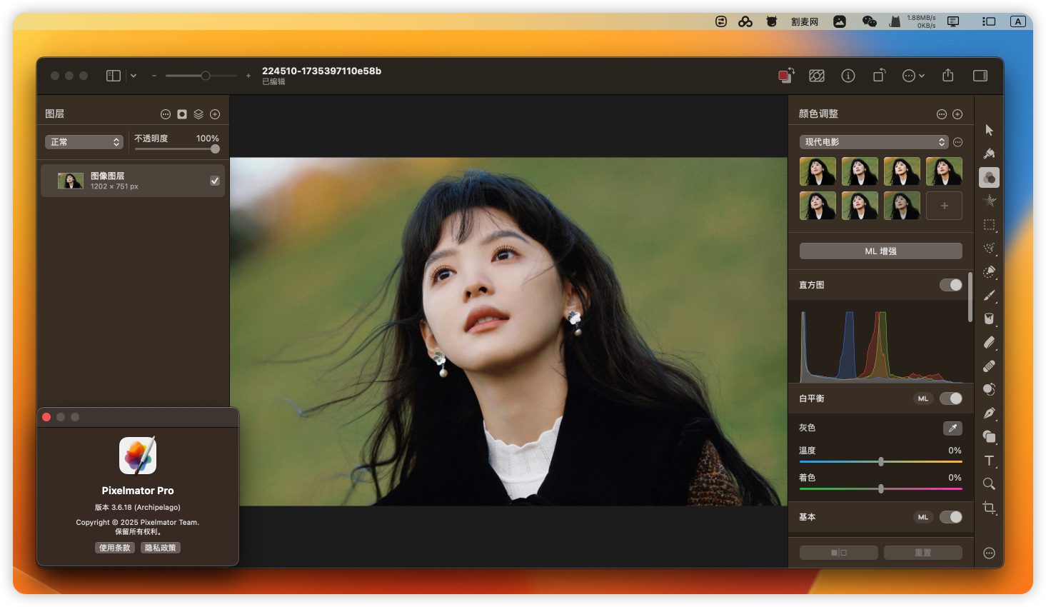 作为Mac专业修图工具的性价比之王,Pixelmator Pro特别适合小型工作室、教育机构及内容创作者。其独创的单窗口工作区消除了复杂面板干扰,而深度集成Mac生态的特性(如触控栏支持、快捷指令调用)让操作行云流水💻。实测在M2芯片MacBook上开启16图层复合设计,流畅度远超同类专业图像编辑工具,资源占用仅为Photoshop的1/4!