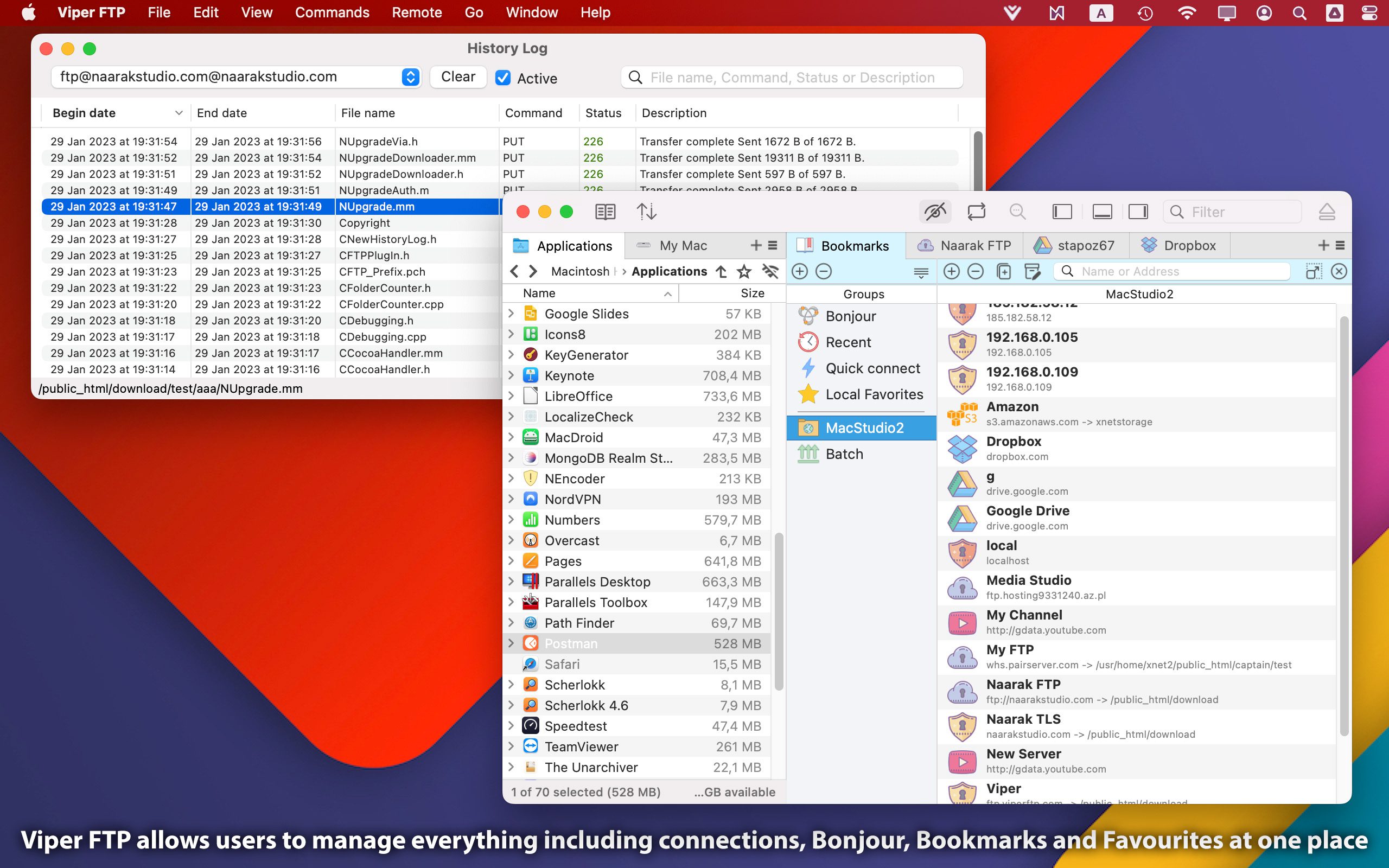 - Viper FTP监控您所做的一切,并在历史记录中保留记录。只需浏览它即可查看服务器中发生了哪些文件更改