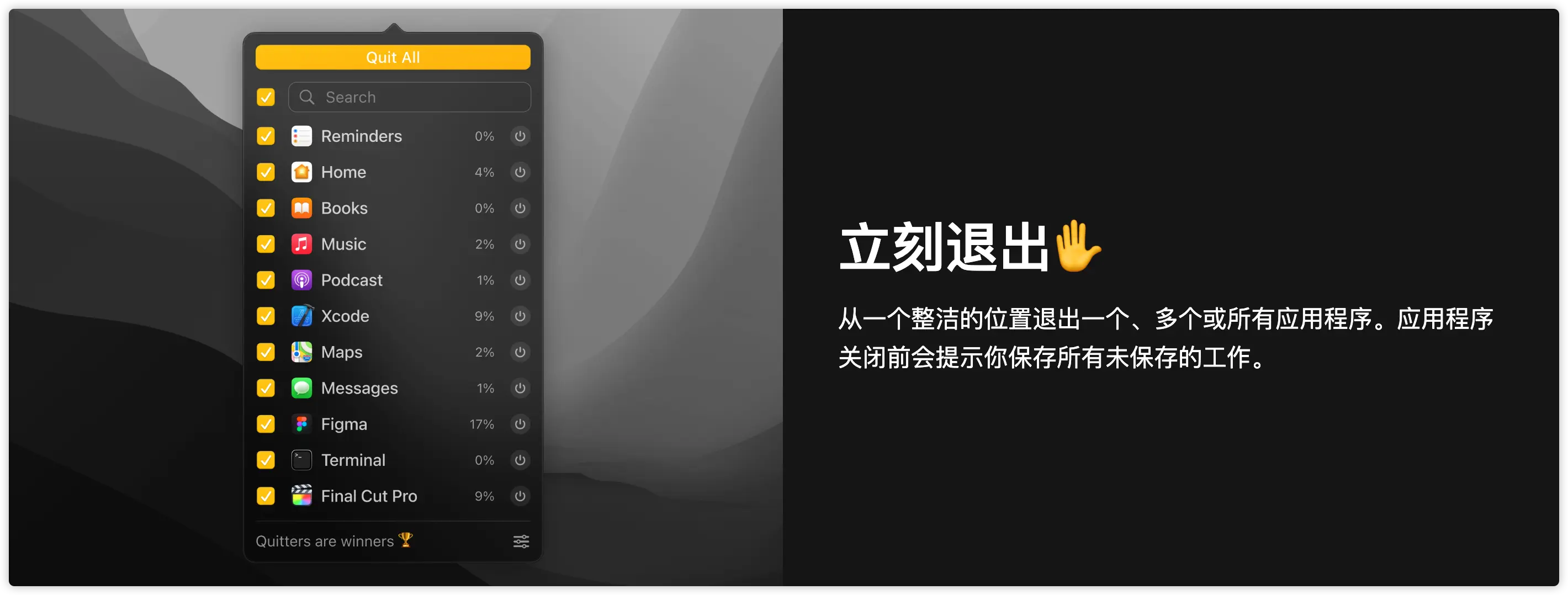 2️⃣ 点击Quit All「智能退出」按钮