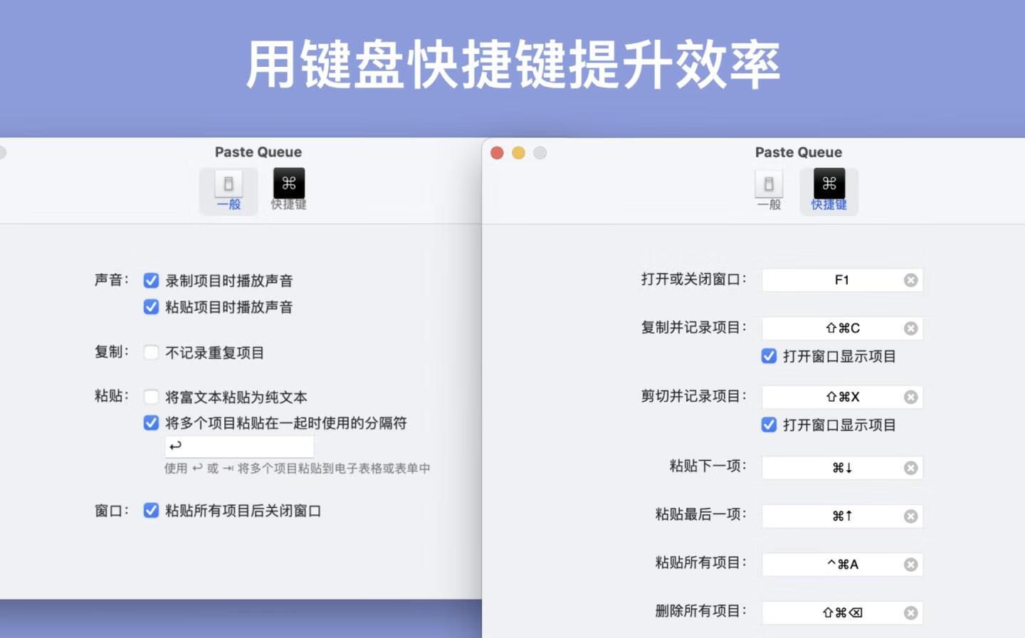 Paste Queue是一款颠覆传统操作逻辑的Mac剪贴板增强工具,专为解决多项目复制粘贴的效率痛点而生✨。它突破系统剪贴板“单次仅存储一项内容”的限制,允许用户连续复制文本、图像、文件等任意数量的项目,再通过快捷键批量或按需粘贴。无论是填充表单、整理数据还是跨应用协作,都能省去反复切换窗口的繁琐步骤,显著提升多任务处理流畅度,堪称编辑、程序员和行政人员的生产力利器🚀。