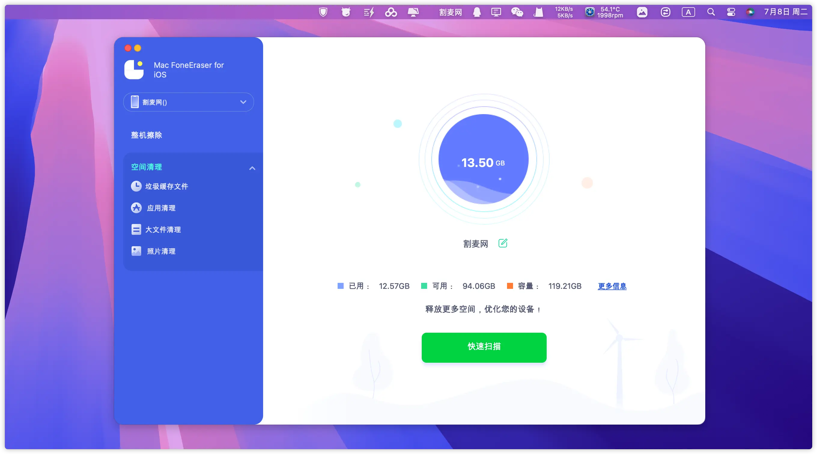 深度清理系统文件、应用缓存、账号凭证及隐藏临时文件,覆盖iOS 12至最新版本系统。 -