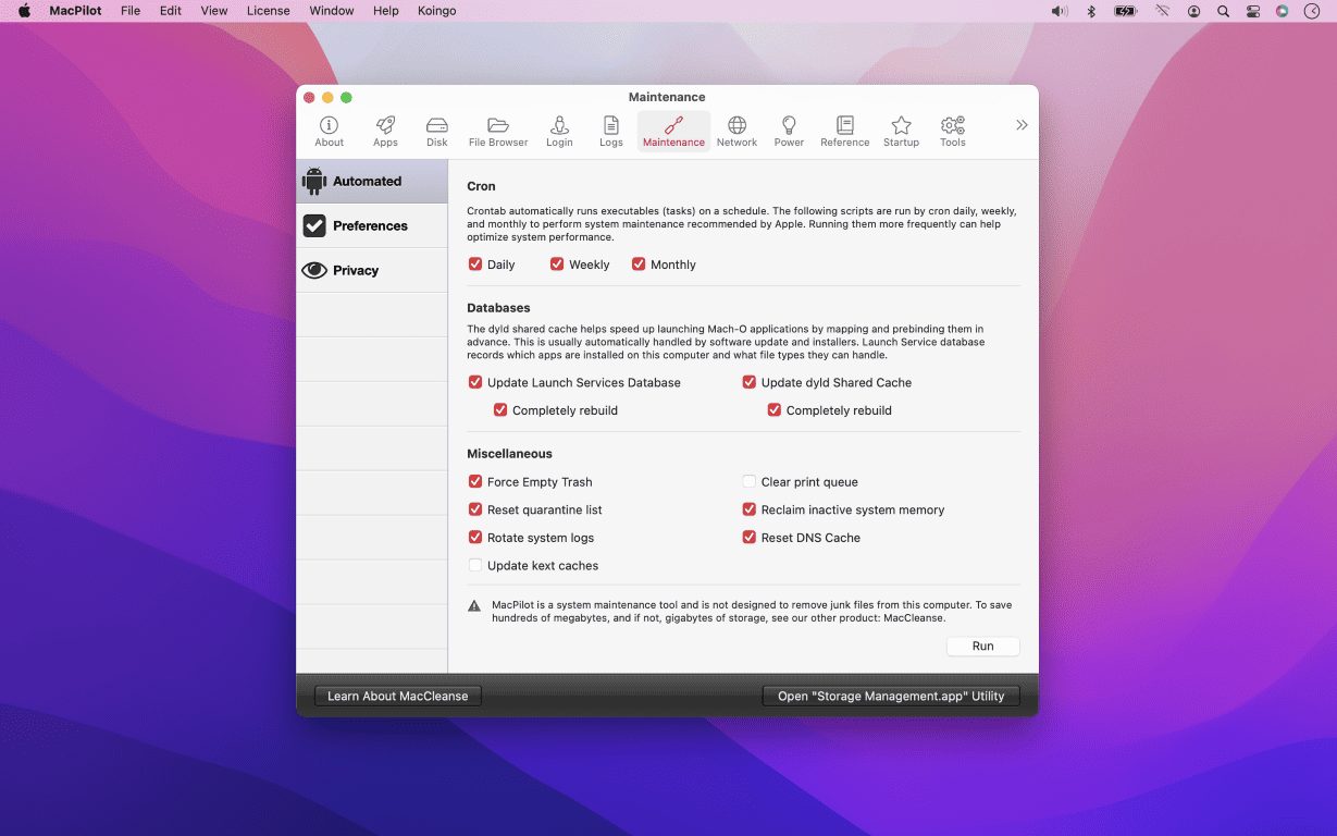 🚀 厌倦了繁琐的终端命令?MacPilot 正是你需要的 macOS系统调优瑞士军刀!这款专业级Mac优化工具通过直观的图形界面,解锁数百项苹果隐藏的系统参数与功能🔧。无需代码基础,即可执行深度清理、网络配置、磁盘修复等高级操作,堪称小白用户与极客玩家共通的系统管理神器。无论是释放存储空间还是定制专属工作流,它都能让Mac性能优化变得像点击按钮一样简单!💻