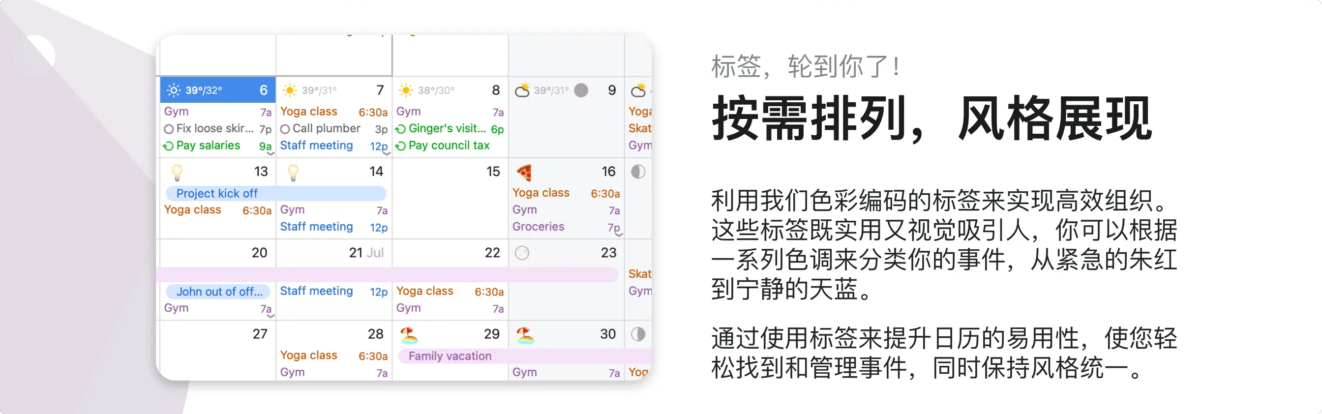同时接管 iCloud、Exchange、Google Calendar、CalDAV 等账户数据,多日历层叠视图让复杂日程一目了然