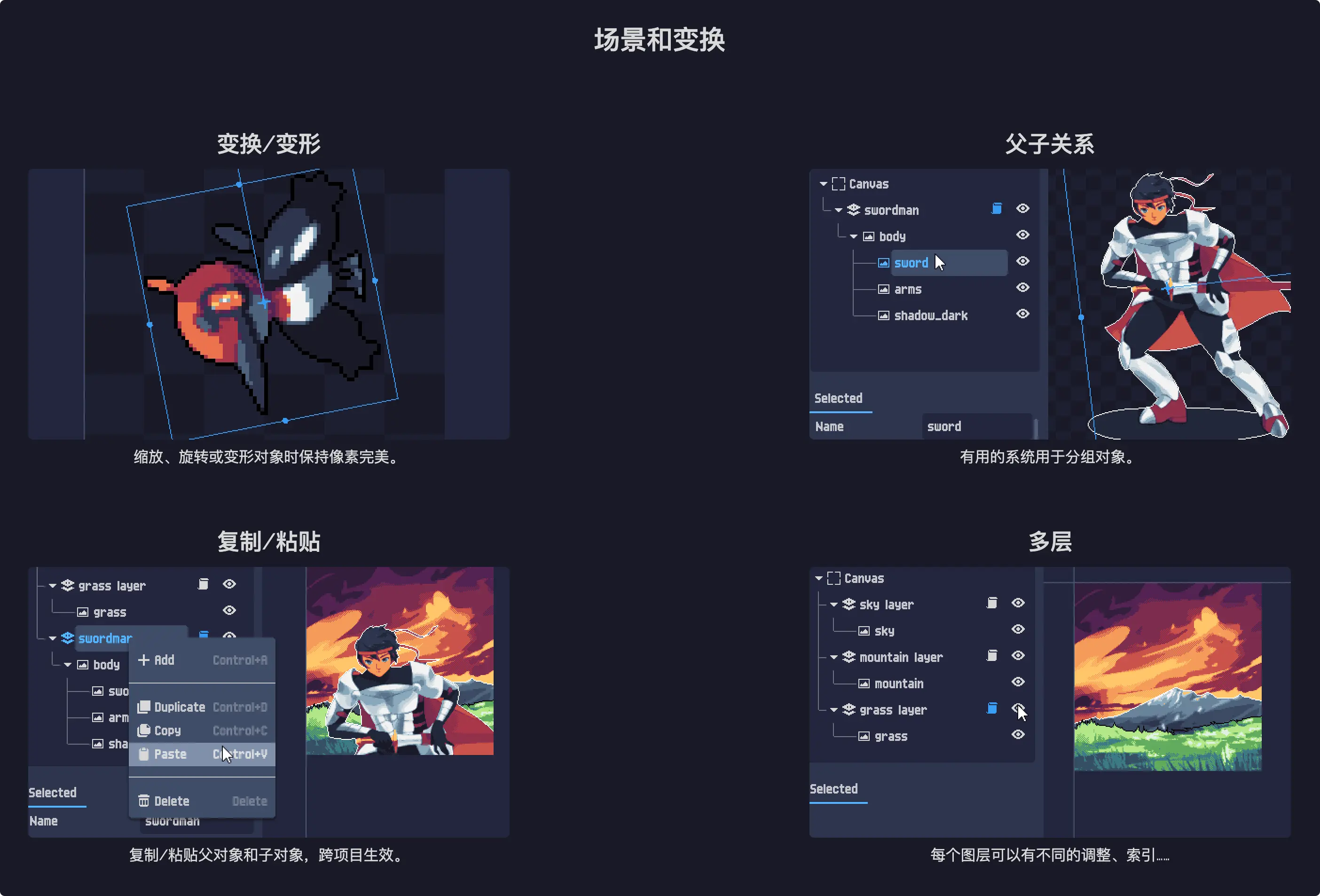 独立游戏开发:快速生成角色、场景像素素材及交互动画。