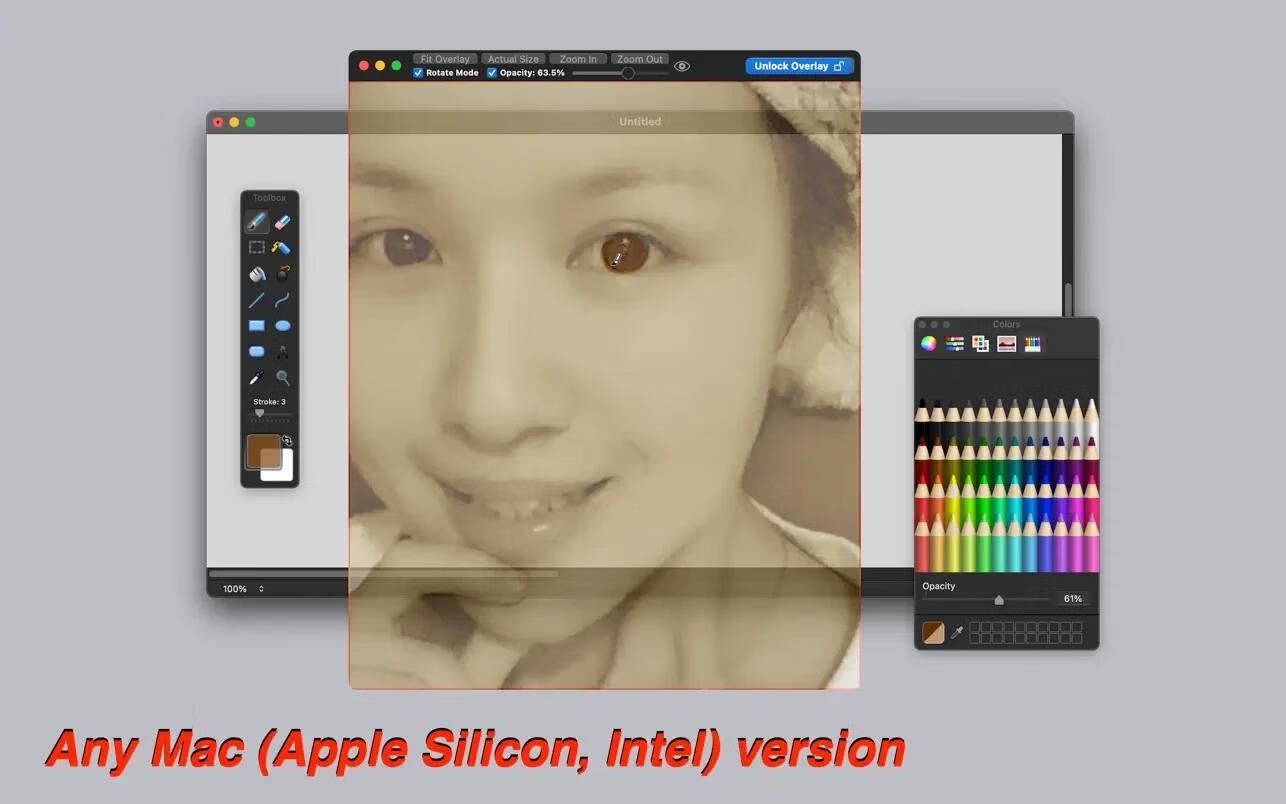 动态透明层:快捷键(⌃⌘+/-)实时调节透明度,精准匹配临摹需求