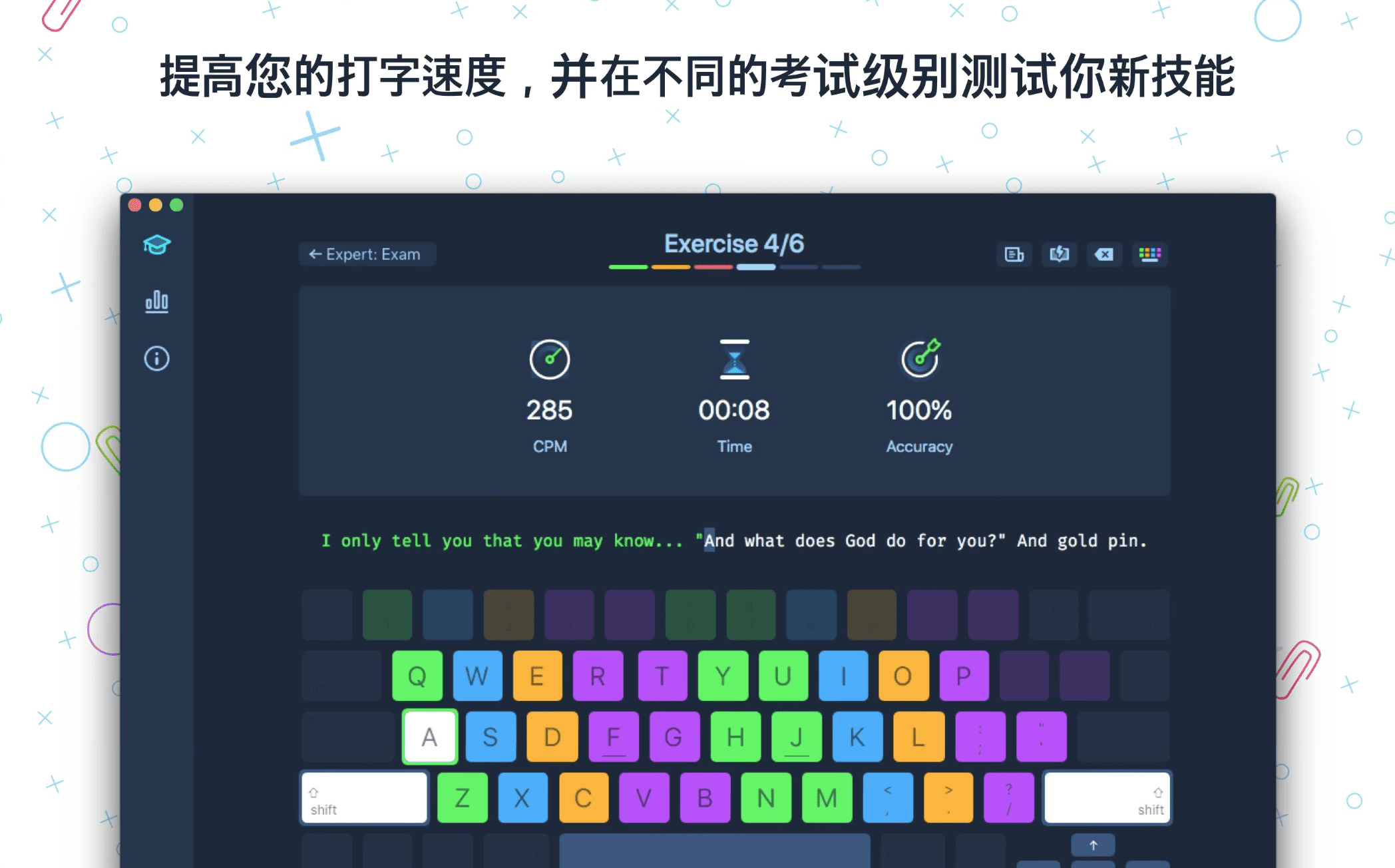 Master of Typing 3(打字大师3-盲打实践)是一款专为Mac设计的专业级触摸打字训练工具,以零基础友好+科学进阶体系为核心优势,帮助用户高效掌握十指盲打技能。区别于传统机械练习,它通过动态难度调节与实时数据反馈(速度/准确率),精准定位用户薄弱环节,结合游戏化学习模式,将枯燥训练转化为沉浸式挑战。尤其针对职场人士与学生群体,其多语言支持(含中文)与跨设备兼容性(Apple Silicon优化),让打字效率提升200%,真正实现“注意力聚焦屏幕,手指自主跃动键盘”的终极目标⌨️。