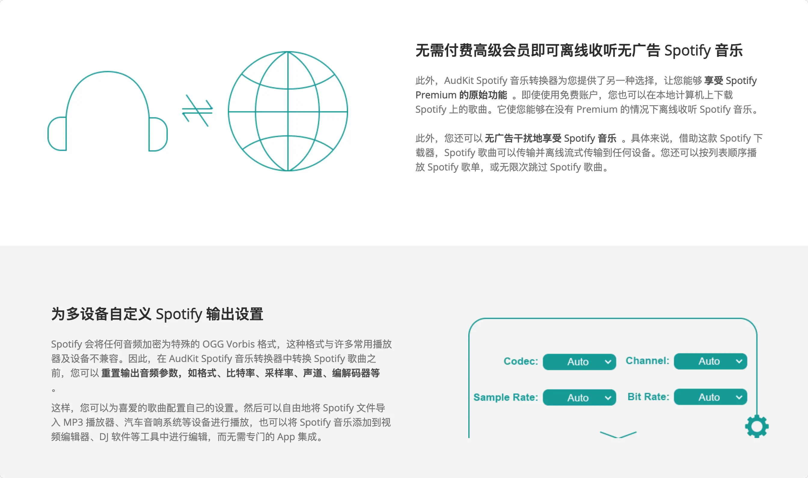 AudKit Spotify Music Converter 🔥 是专为苹果用户打造的Spotify音乐转换神器,彻底解决会员音乐无法离线保存的痛点。区别于普通录音工具,它直接解密Spotify原始音频🎧,支持高速批量转换为MP3/AAC/WAV/FLAC等通用格式,突破设备与地域限制,让您永久免费收藏喜爱的歌单。无论您是通勤族、旅行爱好者还是多设备用户,都能随时随地畅享无损音质音乐库!🚀