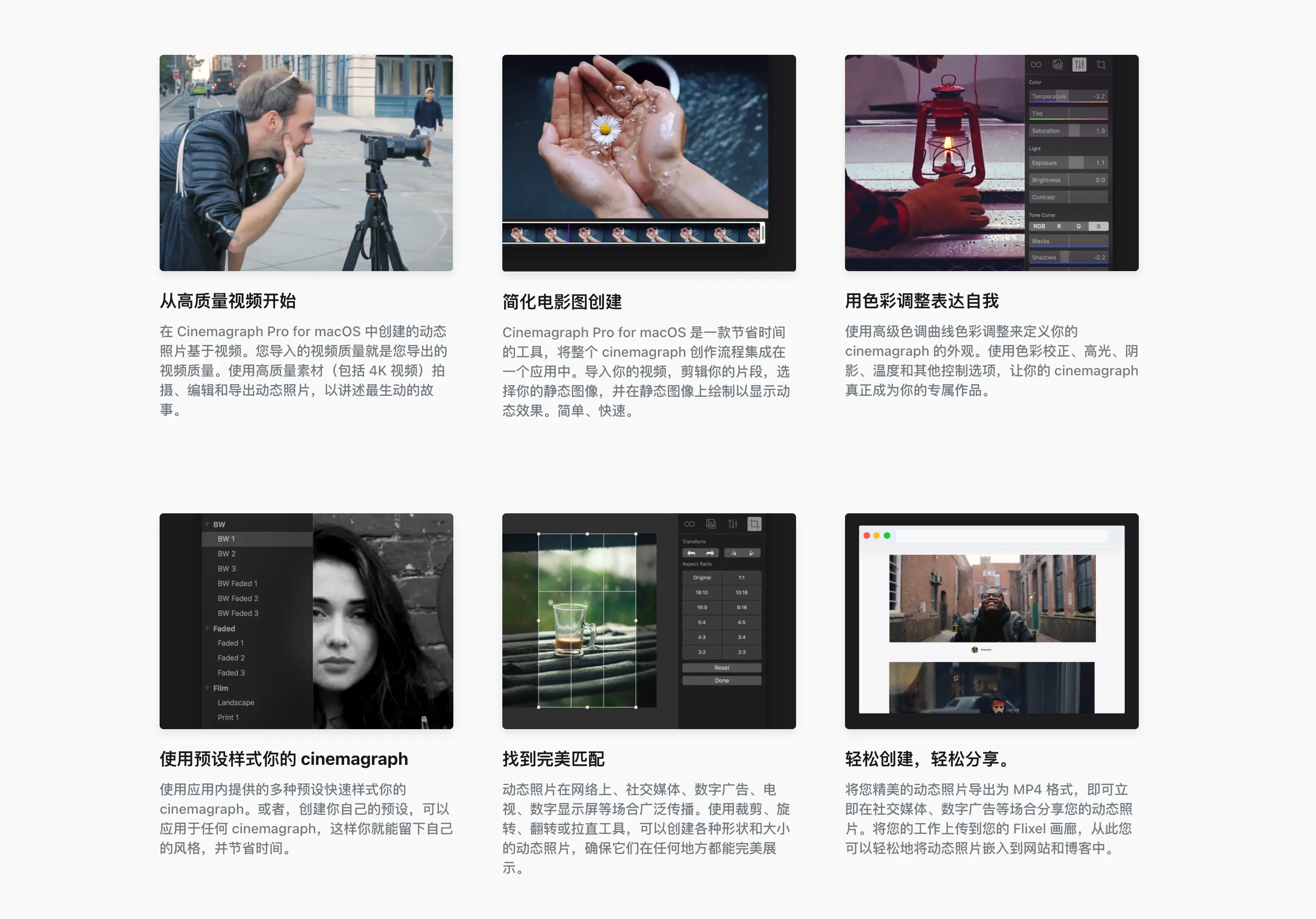 🎬 静态照片的复活术! Cinemagraph Pro 是活照片创作领域的行业标杆✨,革命性「实时蒙版」技术让动态特效制作效率飙升300%!🚀 在4K超清画布上精准雕琢每一帧的流动韵律🌊,小白也能3步创作出杂志级动态视觉——从咖啡袅袅蒸汽到发丝拂动微风,让您的社交媒体从此挣脱静态枷锁!