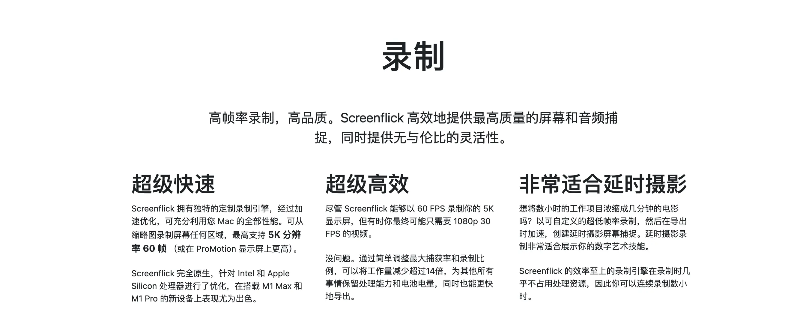 🎬 Screenflick 重新定义macOS专业级屏幕录制标准,为视频教程创作者而生!✨ 这款高性能工具不仅支持60帧丝滑录制任意屏幕区域,独创的教学辅助系统能实时显示快捷键与高亮鼠标点击🔍,更突破性实现「一次录制多次压缩」技术,自由输出不同分辨率/音轨配置的视频,堪称Mac屏幕录制创作与软件培训的终极利器。