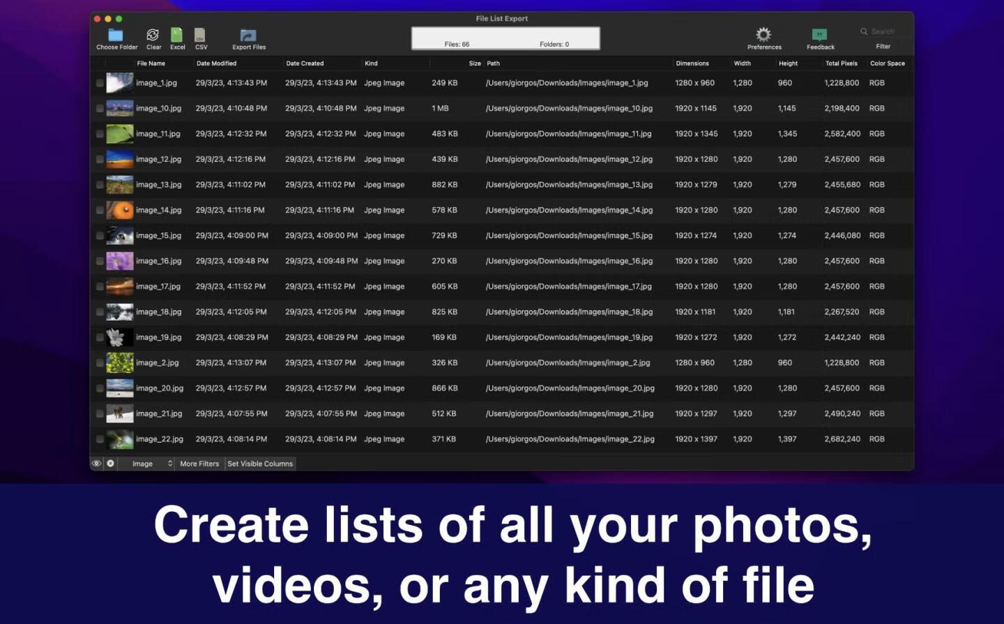 📂 File List Export 重新定义Mac文件管理效率——这款轻量级工具专为精准生成文件清单而生!✨ 无论是整理海量素材还是审计项目资产,它都能快速创建自定义文件列表,支持实时预览编辑+智能过滤搜索🚀。告别手动统计的繁琐,一键导出CSV/HTML等格式,堪称摄影师、开发者及系统管理员的必备Mac文件管理工具。