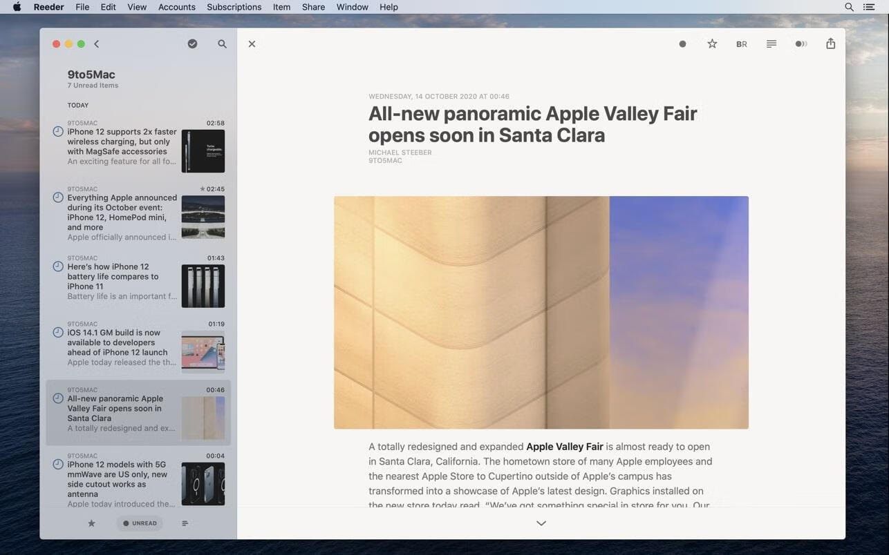 使用iCloud同步所有提要和文章。Reeder 5带有内置的RSS / Feeds服务,它将使所有设备上的所有内容保持同步。当然,这是可选的。您仍然可以仅使用Reeder支持的众多第三方服务之一,也可以仅使用RSS(不同步)。