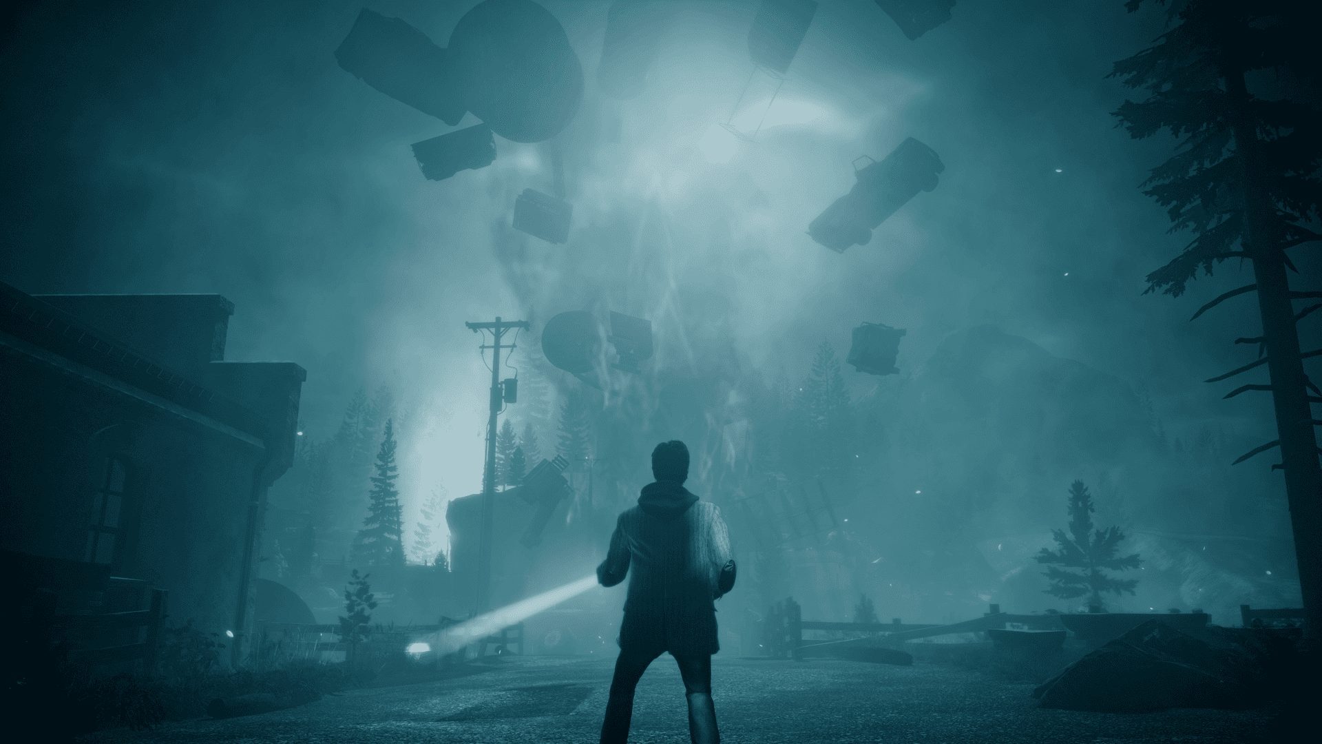 以美剧的手法呈现,艾伦韦克使用 Remedy 的招牌叙述方式以及紧张火爆的情节。当玩家陷得越深,越能体验其中的悬疑。他将面对各种事件,情节曲折,扑朔迷离。他必须和散发光芒的器械并肩作战,只有它们能抢先一步抑制笼罩在亮瀑镇的黑暗。