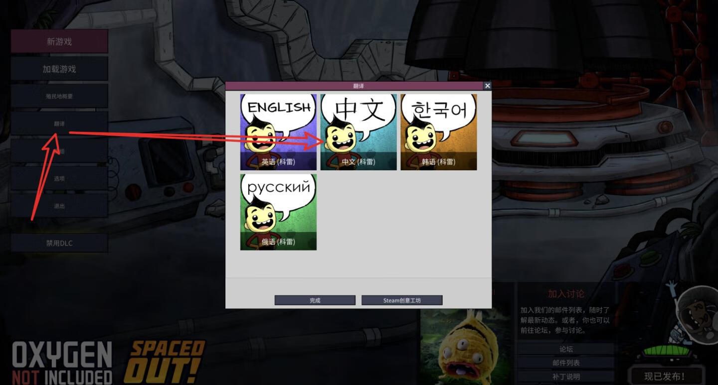 进入缺氧游戏中文版后,点击【TRANSKATIONS】。