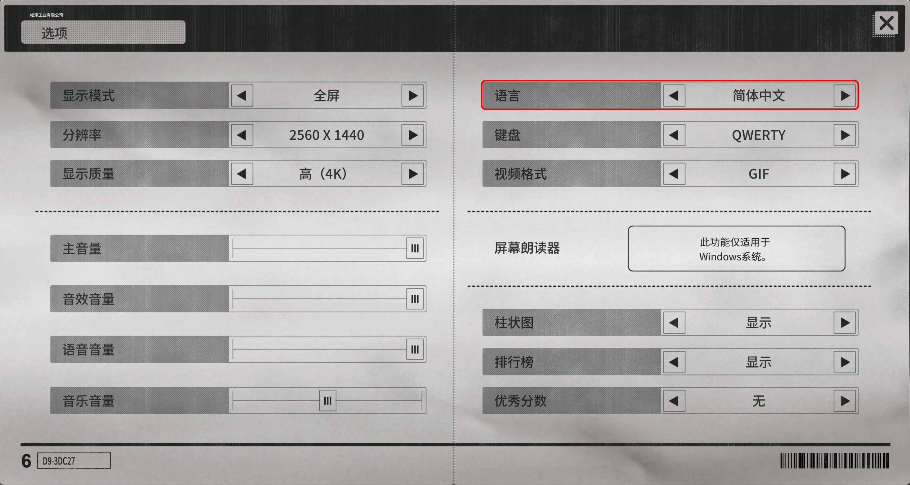按ESC进入设置菜单 -> OPTIONS -> Language (选择简体中文)