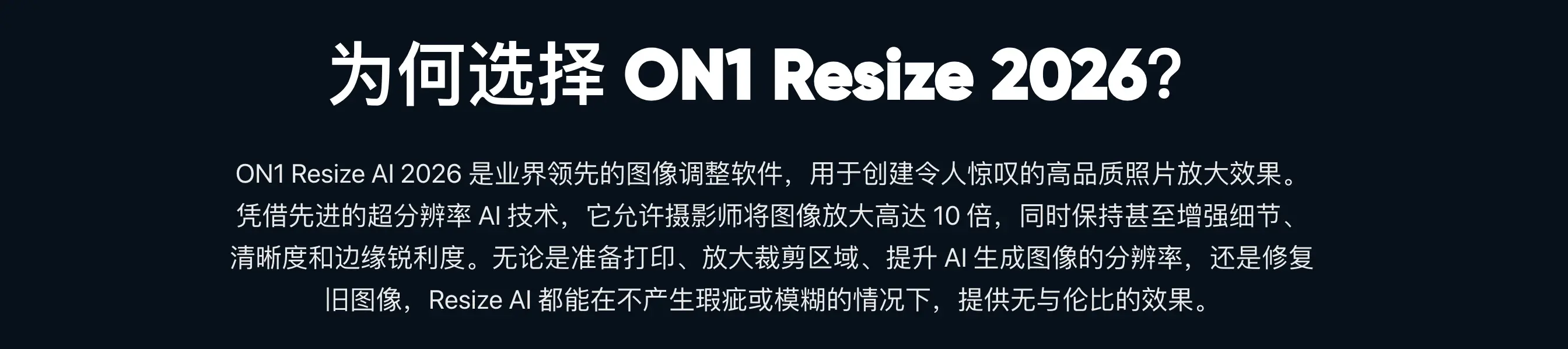ON1 Resize AI 2026是专为Mac设计的AI图像无损放大软件,凭借超分辨率技术重塑行业标准✨。它突破传统限制,支持高达10倍照片放大,在提升裁剪细节、修复旧照片或优化AI生成图像时,能智能增强边缘清晰度与纹理,杜绝模糊或伪影问题,尤其适合专业打印和数字展示需求。无论是手机快照还是专业摄影作品,都能转化为画廊级输出,为摄影师提供无妥协的画质解决方案。