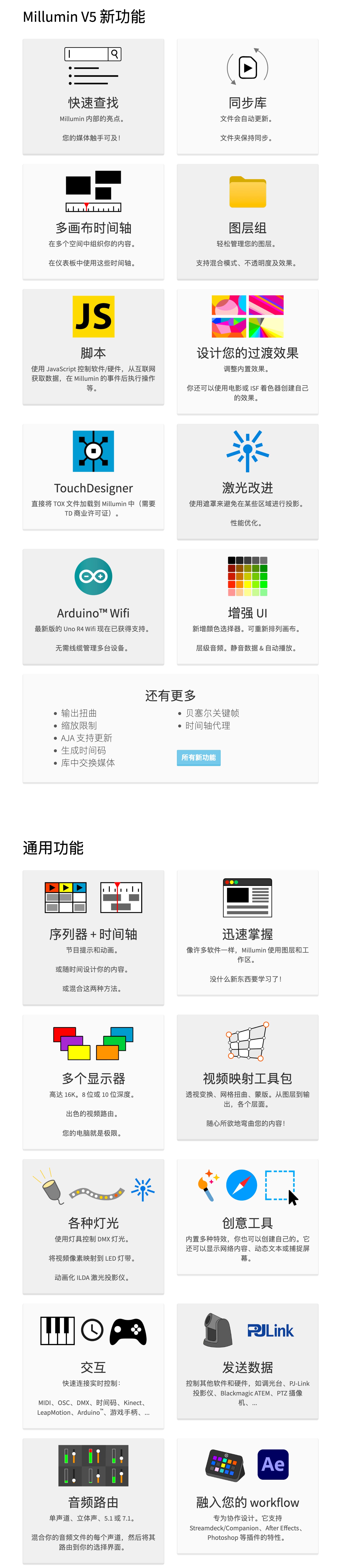 ✅ 智能设备中枢:通过Artnet/OSC/MIDI协议连接灯光台、激光设备(如LaserCube)、NDI摄像机,构建一体化制作网络。