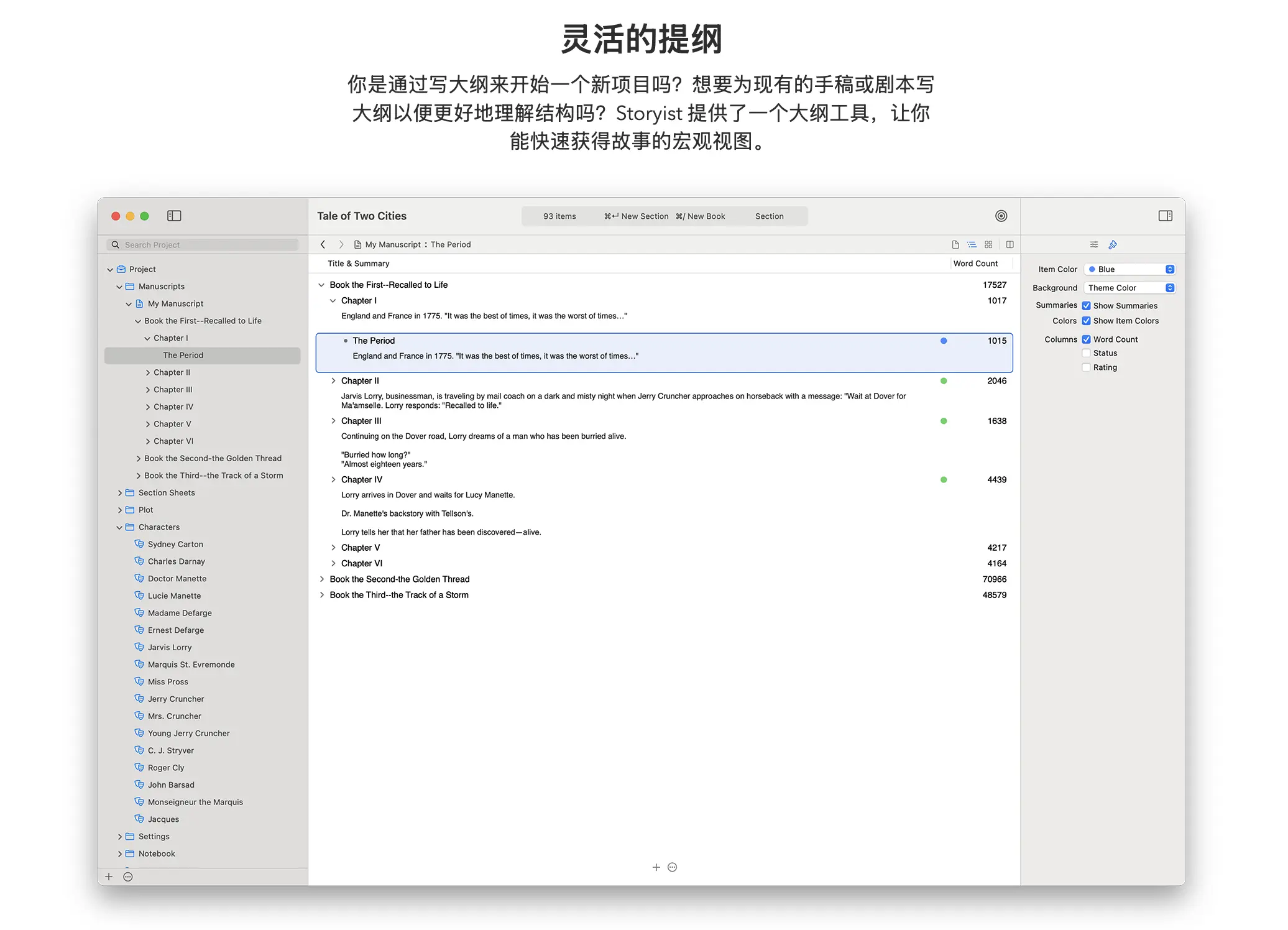 ✍️ 在Mac专业写作工具领域,Storyist 凭借其结构化叙事引擎与跨媒介出版能力,成为小说家与编剧的创作中枢。区别于传统文字处理器,它深度融合角色管理、情节架构与多格式输出,通过可定制故事表单与智能索引卡系统将碎片灵感串联为完整叙事流。原生支持中文字符集与M系列芯片的特性,更使其成为中文创作者的首选Mac专业写作工具。