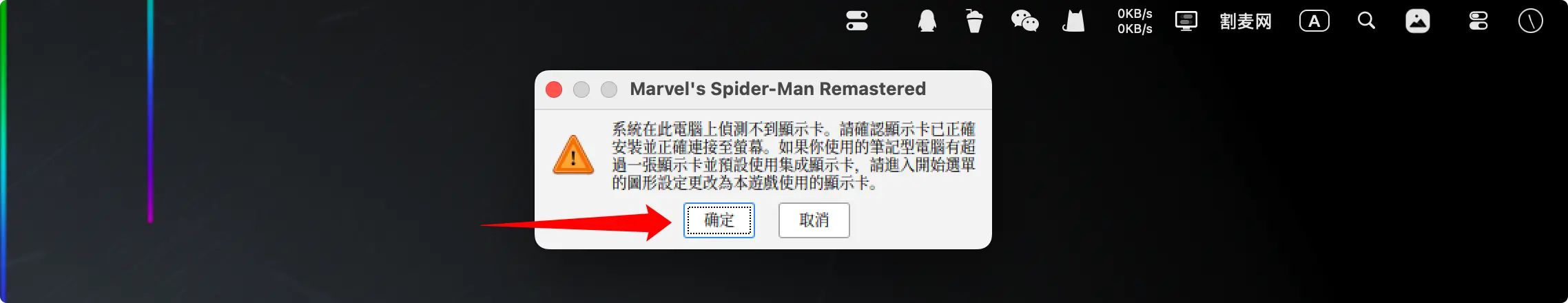 游戏启动时会弹出警告,提示系统在此电脑上侦测不到显示卡。直接点“确定”忽略即可。(已支持 DLSS 及光线追踪)